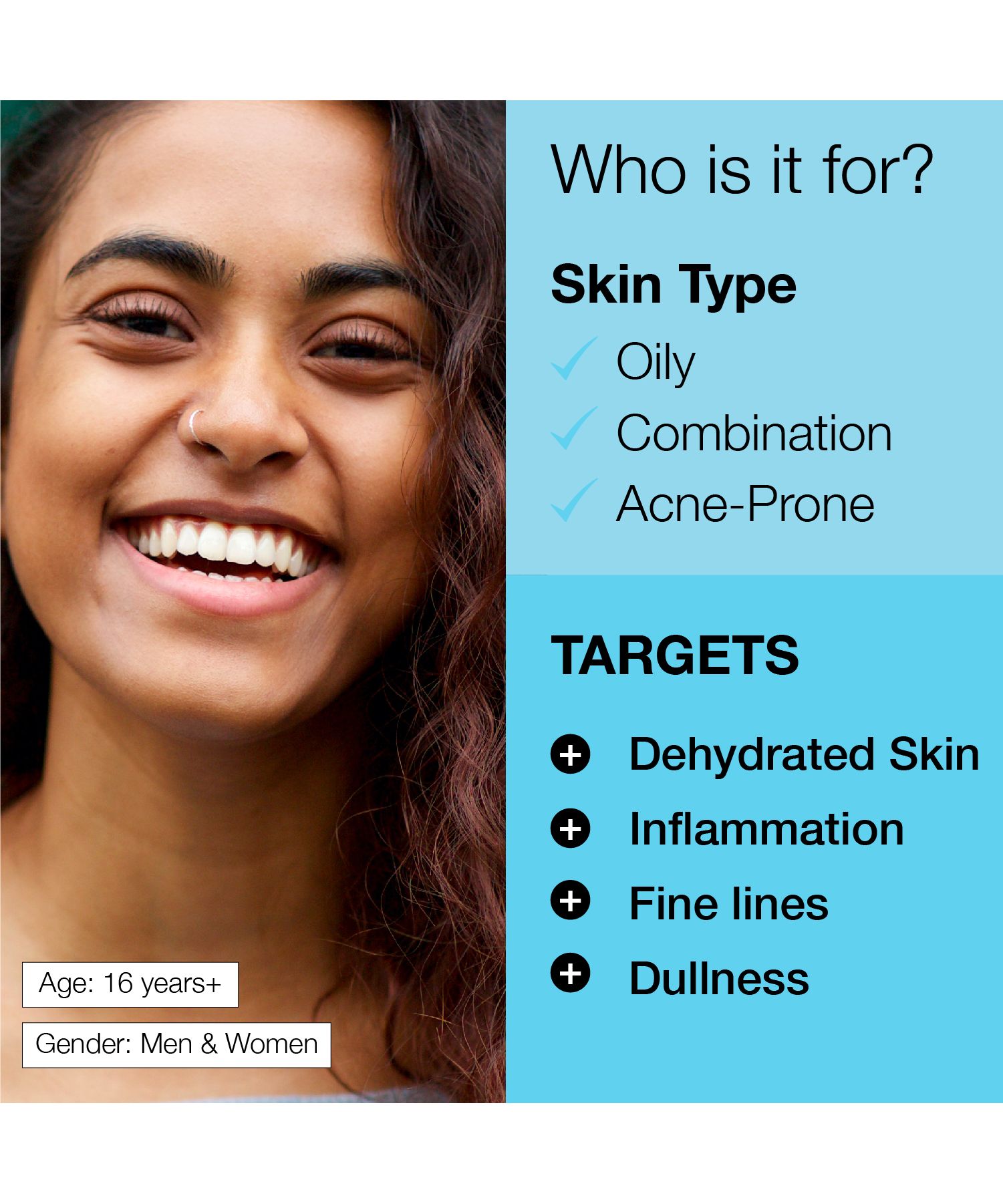 Suits combination, acne prone and oily skin type