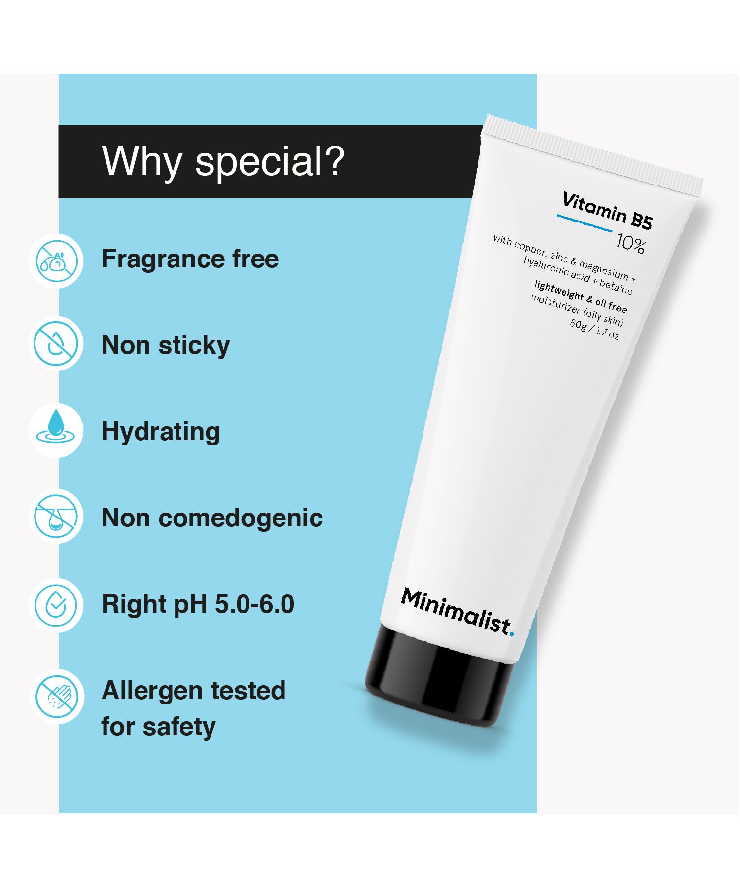 10% Vitamin B5 boosts hydration and promotes faster skin healing.