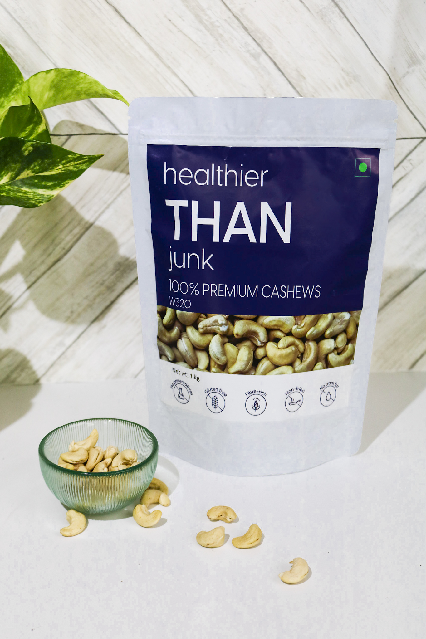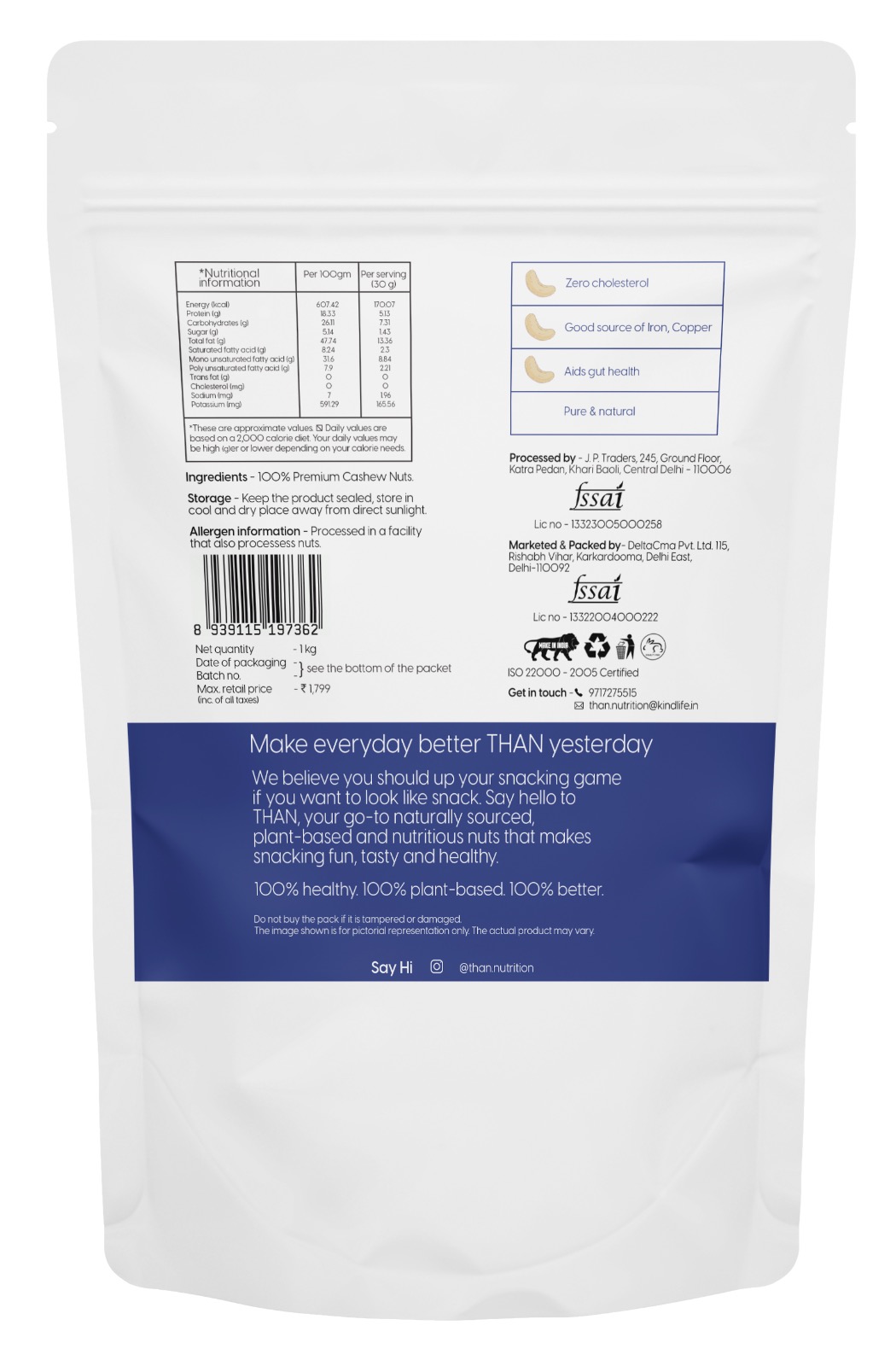 Indulge in the irresistible texture and nourishing qualities of THAN Crunchy Cashews. Order a pack today to experience a snack that not only satisfies your cravings but also supports your body's well-being. We meticulously source our cashews from top suppliers, ensuring exceptional quality. Each cashew is carefully chosen for its plumpness and flavor, guaranteeing an irresistible taste that will leave you wanting more. With up to 2 grammes of protein per serving, Than Crunchy Cashews are a rich source of this essential nutrient. Protein plays a vital role in maintaining and repairing your body's tissues, promoting muscle growth, and providing enduring energy. Our cashews are packed with heart-healthy monounsaturated fats, essential vitamins, minerals, and antioxidants. This wholesome combination contributes to your overall well-being and provides a nutritious boost to your daily diet. The blend of protein, healthy fats, and fiber in THAN Crunchy Cashews delivers a satisfying snacking experience that keeps you fueled and focused, making them an ideal option for a quick energy boost on the go.
