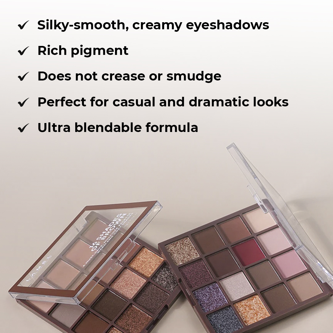 Perfectly arranged in colors, the 16 Shades palette will save you from the painful choiceof which other shades to combine it with. The palette is available in two color ranges