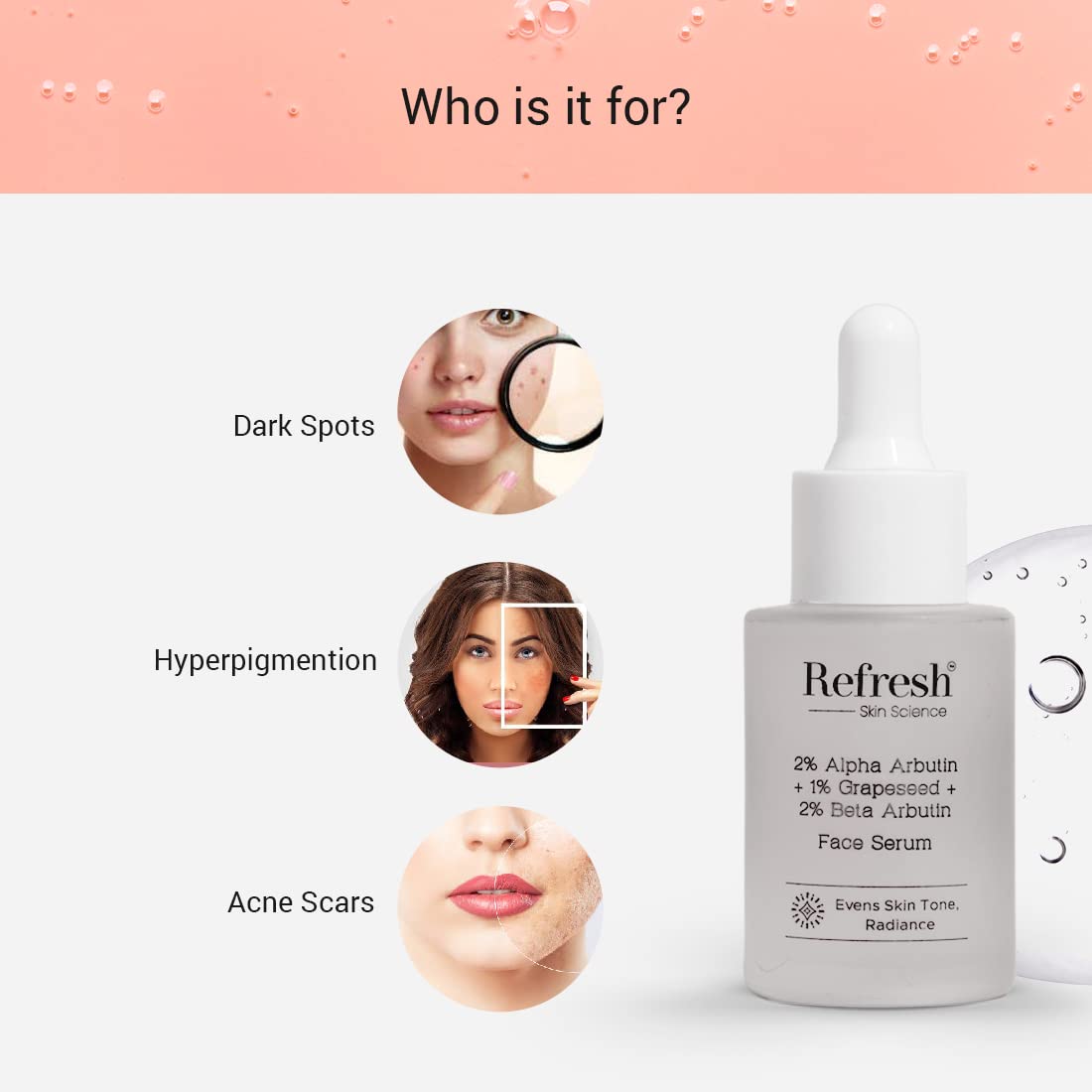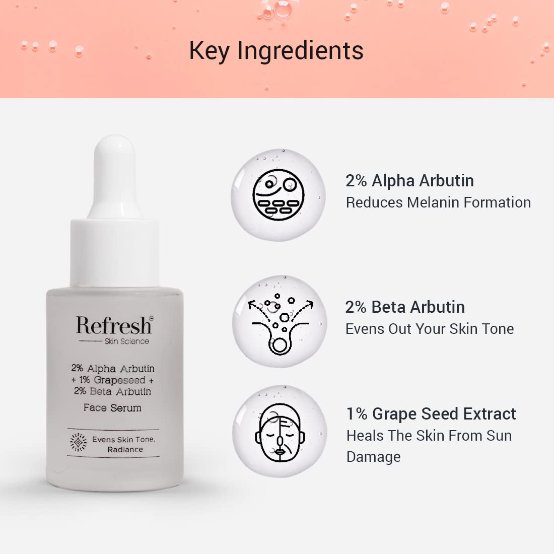 Get rid of dark spots and hyperpigmentation forever. Our Arbutin serum with added grape seed extract is a more effective and safer alternative to hydroquinone and provides a skin brightening effect.