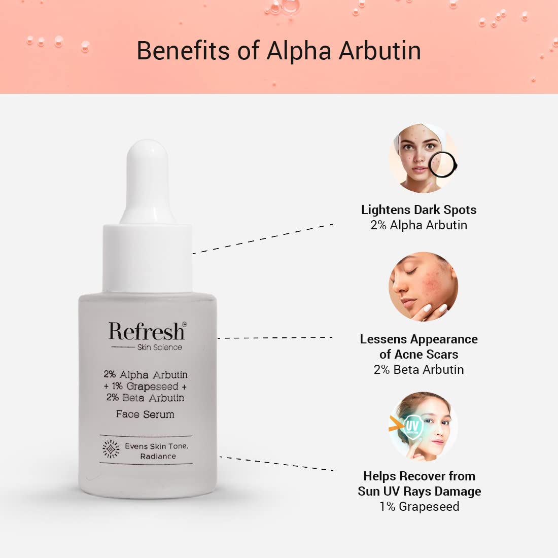 Apply a couple of drops of Arbutin serum to your cheekbones and forehead using the dropper. Spread the serum evenly so that the serum slides over your skin, allowing for deep brightening. For optimal results, always leave 2-3 minutes between each serum to allow deeper penetration and absorption before layering your face with other skincare products, and never step out without sun protection.