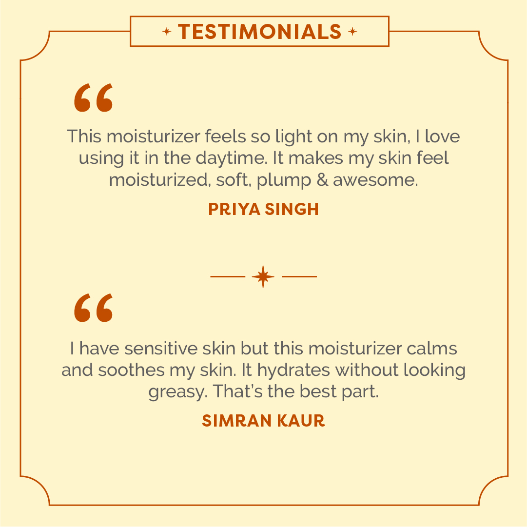 5000 year old recipe and a concoction of natures purest ingredients - 5% Chandanam Light Face Moisturizer is crafted with the wisdom of Ayurveda and modern techniques to give your skin the absolute best. A classical formulation reimagined for the modern skincare routine, it is meticulously made with Sandalwood, Turmeric and 26 precious herbs. Use it to reduce tan, replenish skins water content, soothe skin, even out skin tone or all of it. With its feather-light texture, you dont have to wait for it to absorb. Quickly to absorb & quicker to show results, its everything you need to make your skin look bright, soft, plump and youthful.