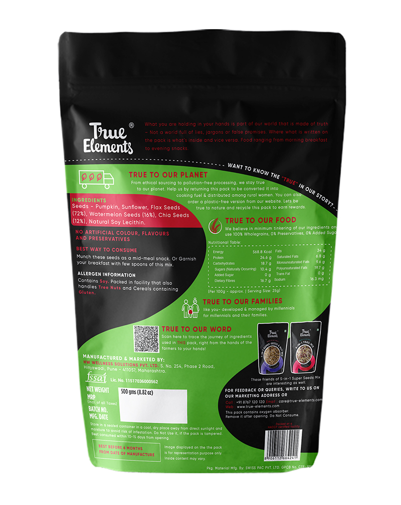 True Elements brings to you a premium combo of 5 Roasted super seeds, all of which possesses its own specific health benefit.