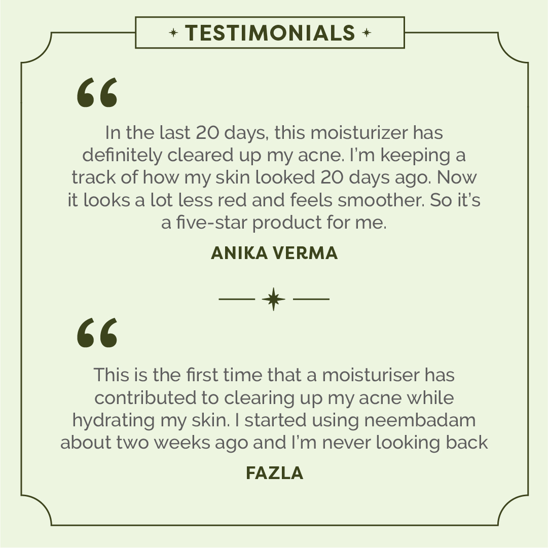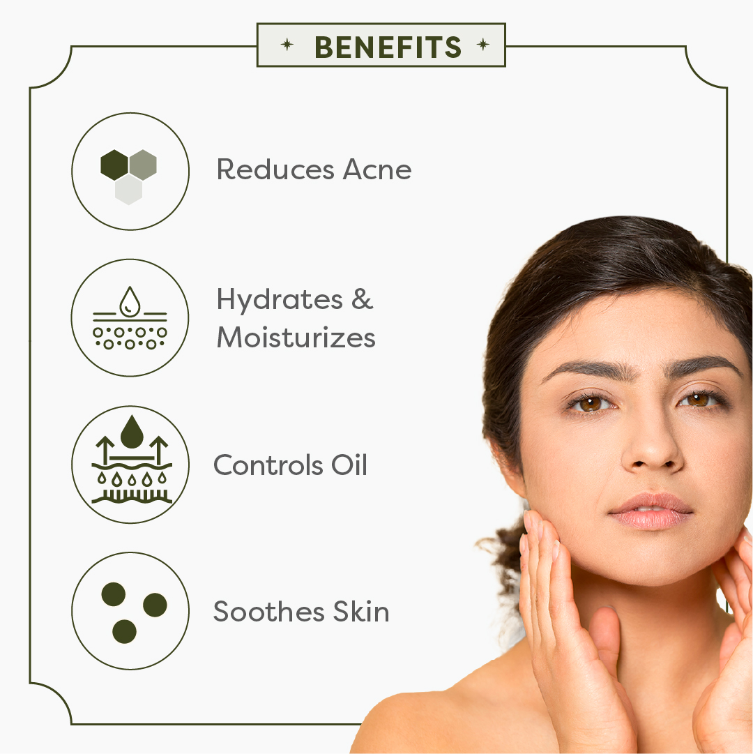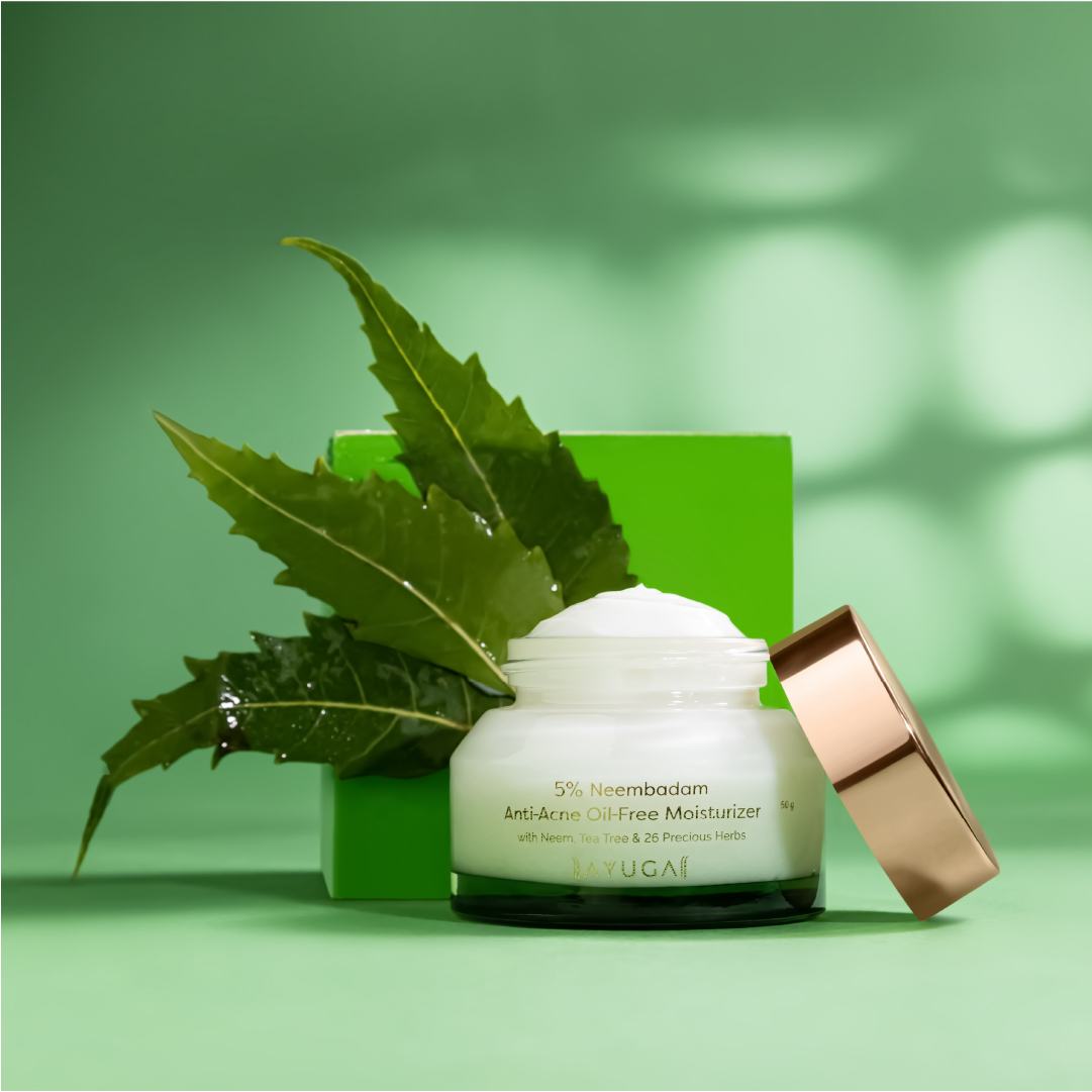 Moisturize your way to clear and healthy skin with Ayuga 5% Neembadam Anti-acne Oil-Free Moisturizer. An Ayurvedic concoction of skin-purifying agents, it combats acne-causing bacteria. It regulates excess sebum production while hydrating, moisturizing, and healing the skin. Its lightweight formula locks in moisture without causing stickiness, leaving the skin smooth and plump.
