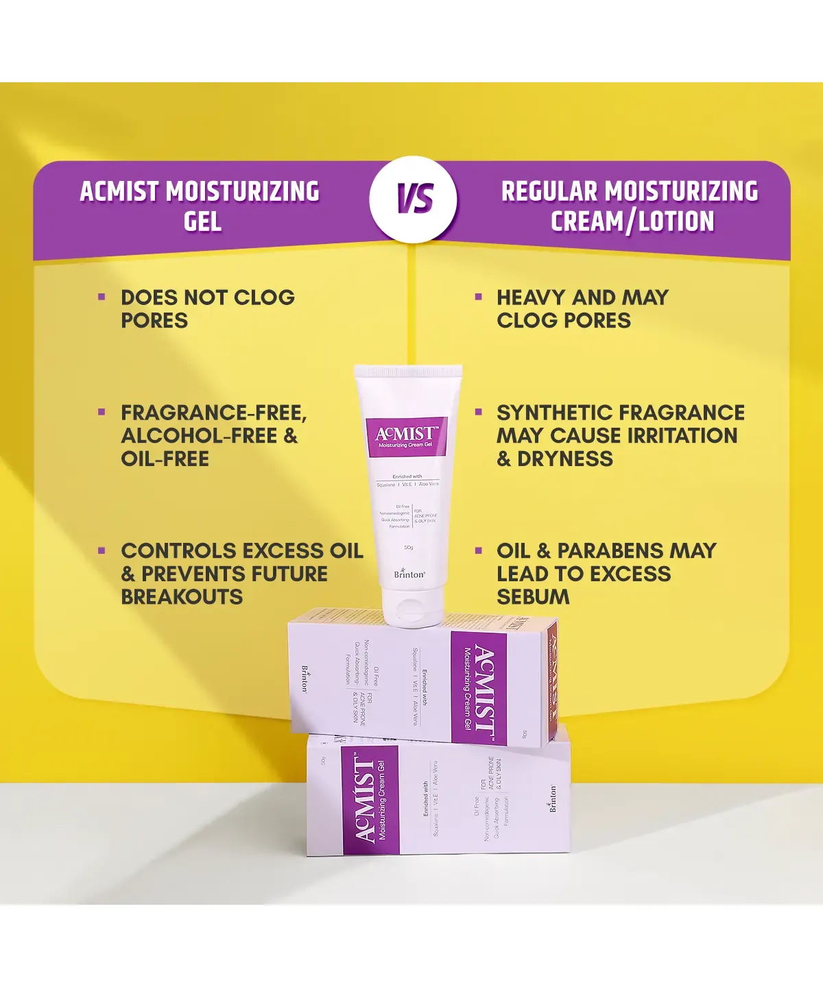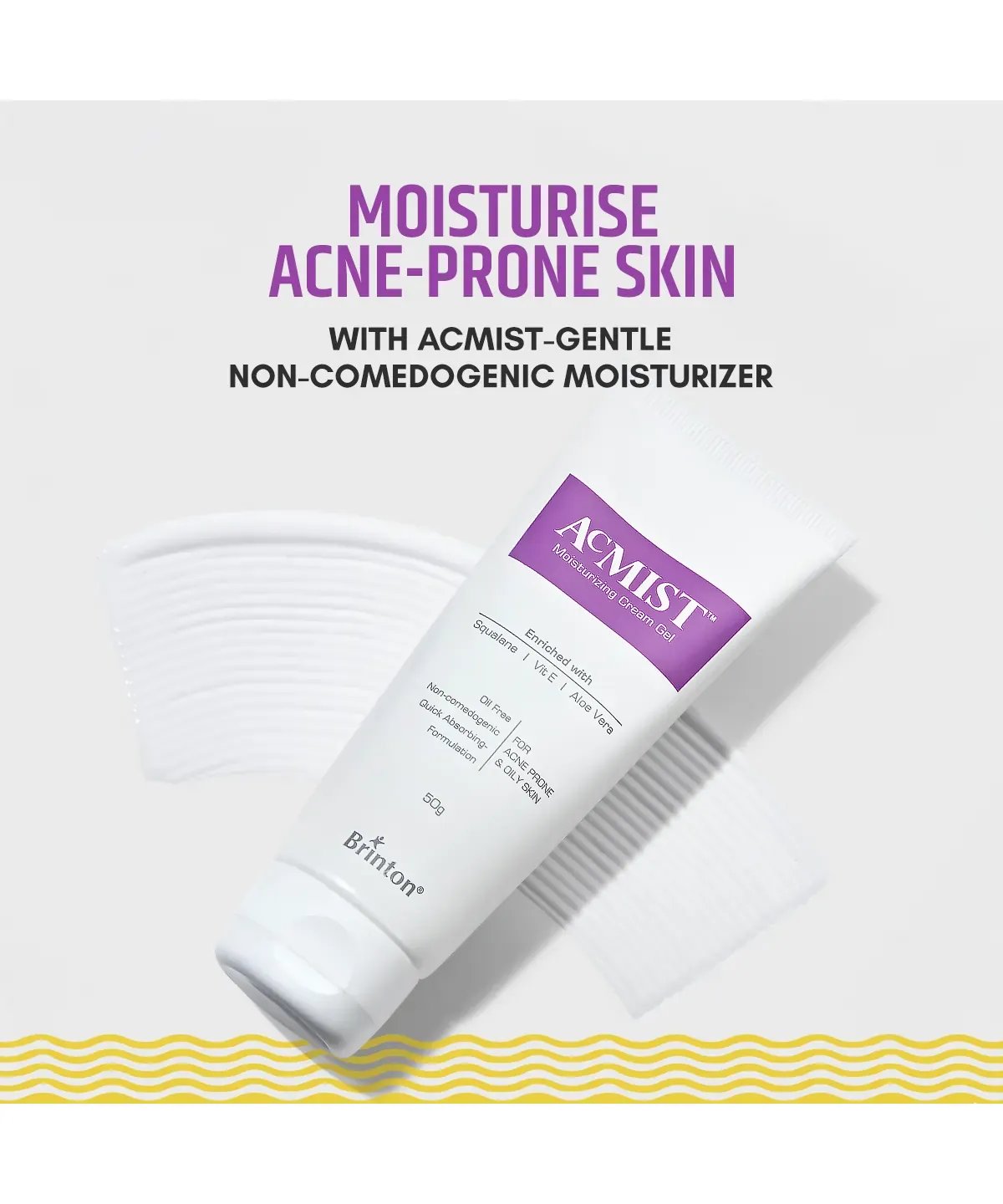Brinton Acmist Moisturising Gel - 50 gm a lightweight, oil-free moisturizing gel designed for acne-prone and oily skin. It hydrates without clogging pores, leaving the skin soft and supple.