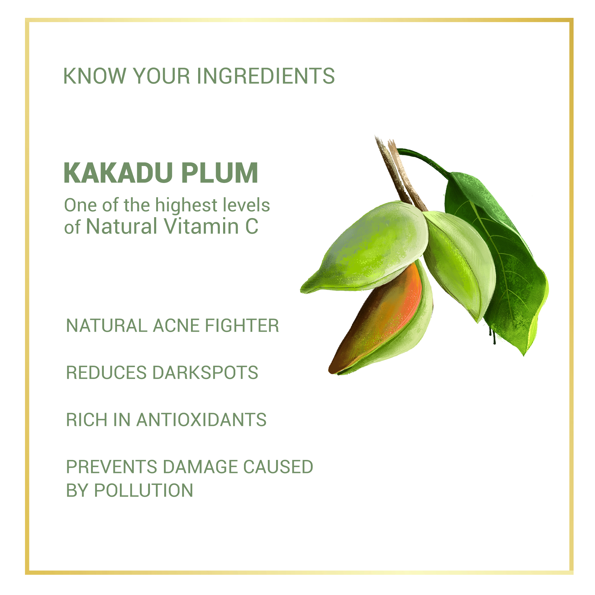 Kakadu Plum, Hyaluronic Acid, Tasmanian pepperberry, Kelp Weed, Hibiscus Extract, Green Coffee, Iron Oxide