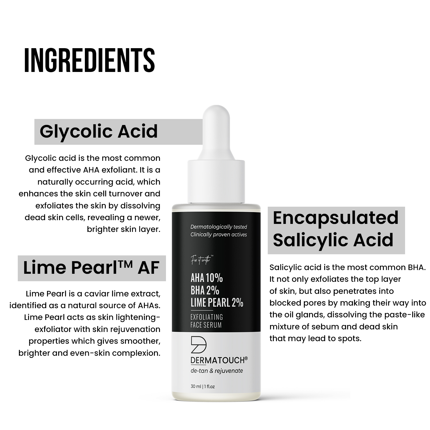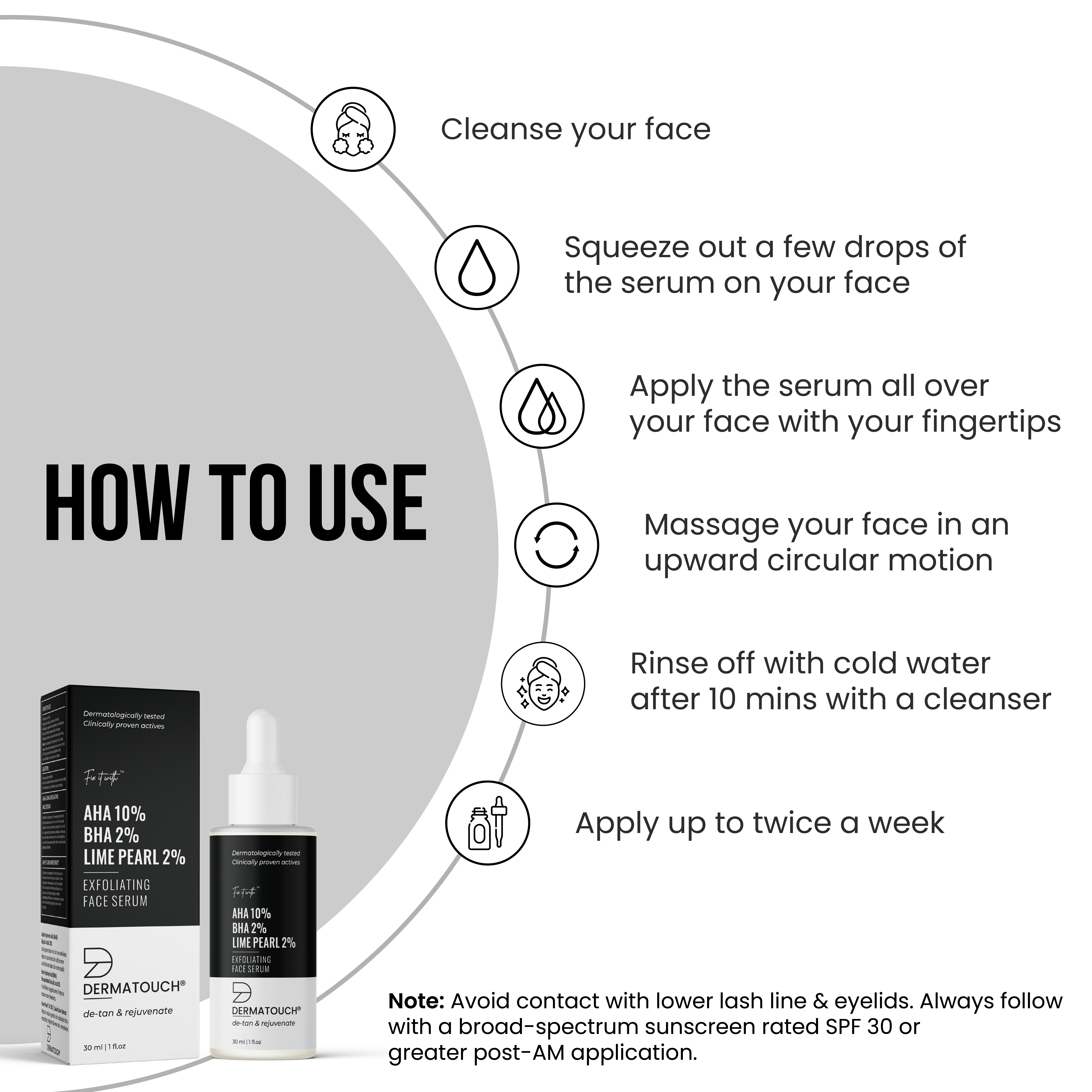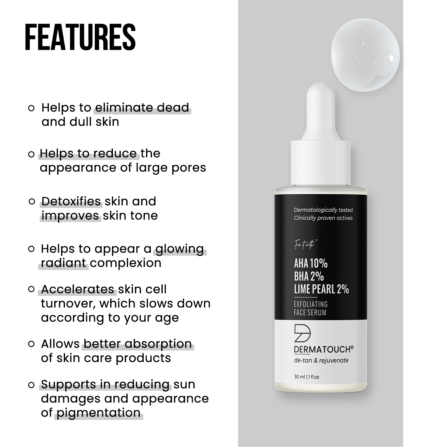 This exfoliating face serum with clinically proven actives helps rejuvenate skin. This serum is gentle and helps in exfoliating built-up layers of tanned dead skin for brighter skin. The blend of AHA, BHA, and lime pearl in this non-pore clogging exfoliator sheds dead skin cells and works deeper on pores and dirt.