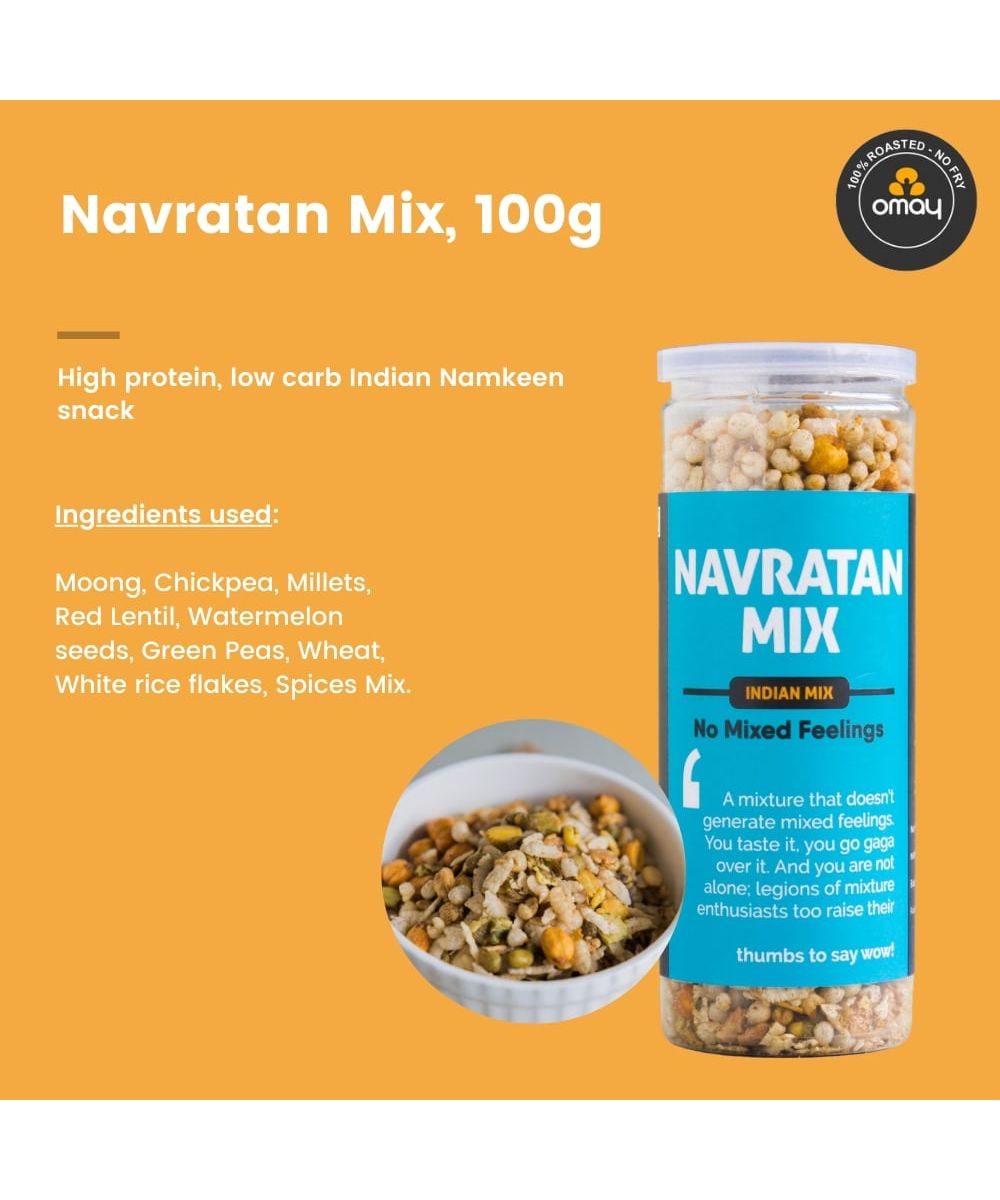 All Omay Foods snacks are made using Rajasthan's Roasting process - wherein food in cooked in salt OIL-FREE. Seasoned in homemade masala, the snacks are all natural, super delicious and healthy, for care-free bingeing.