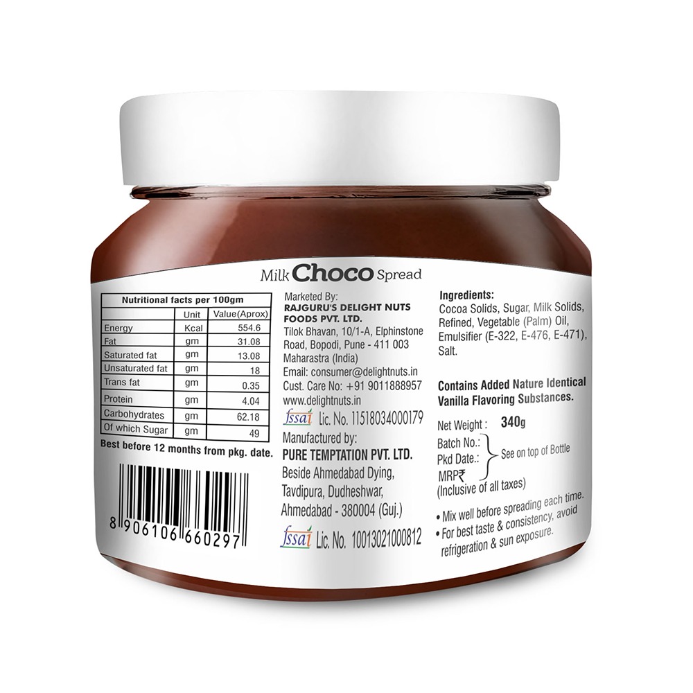Delight nuts Almond choco spread comes with yummy tasty of Almond, ideal for spreading on bread, rotis etc.