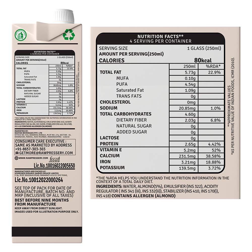 Here's a new way to have your daily dose of almonds. Introducing dairy-free almond milk (unsweetened). A perfectly delicious and creamy dairy alternative which you can add to your shakes, daily tea and coffee.