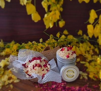 Creamy herb and nut rich Scrub specially designed to nourish, repair and heal scars caused by acne or sunspots with the goodness of Vitamin A and E with Almonds, zinc and phosphorus with Pecansalong with notes of Nutmeg, Ceylon cinnamon, Vanilla leaf extractand more. Removes dead cells and dull skin leaving the skin supple, healthy and glowing brightly.