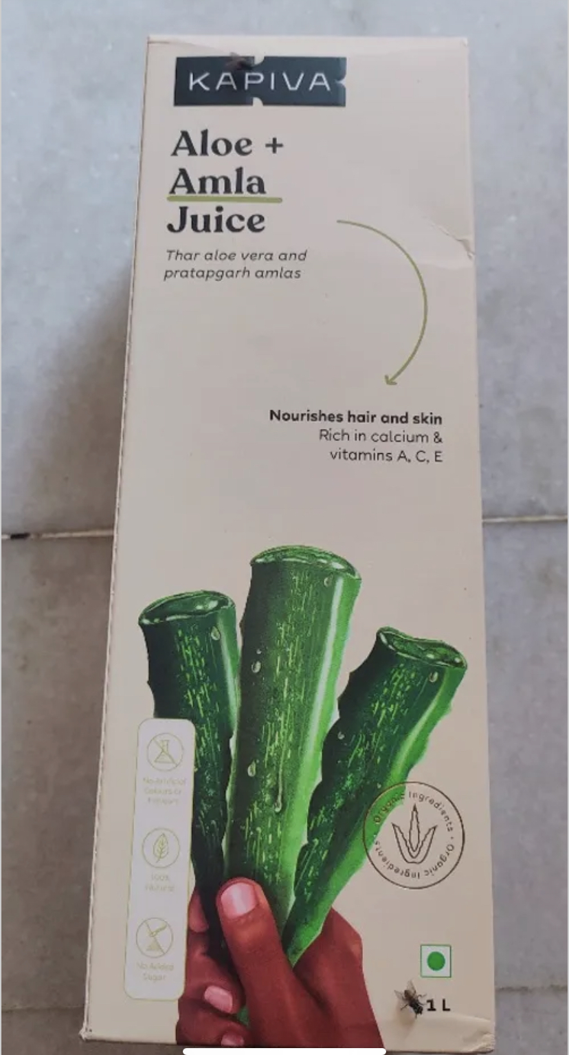 HOLISTIC WELLNESS: Our Aloe+Amla Juice is made from fresh amlas, plucked from forest trees and are cold-pressed in the manufacturing unit under hygienic conditions. The Aloe Vera used in our juice is made from freshly extracted pulp from the inner leaf. We deliberately keep some pulp, intact within the juice, to give you complete nutrition and retain the original taste and flavour. We do not add sugar, flavour, gum or colour in our juices.DAILY DETOX: When Aloe Vera and Amla are mixed as an unique ayurvedic, herbal juice it brings with it a whole lot of health benefits. This juice helps improve metabolism and digestion thereby aiding weight loss. It also acts as a natural detoxifier that helps cleanse your system from within. ESSENTIAL VITAMINS AND MINERALS: Our Aloe+Amla Juice is a rich source of Calcium, Vitamin E, Vitamin A, Vitamin C that help fulfil your nutrition goals. Its anti-ageing properties gives your skin and hair a healthy look. NATURAL GOODNESS OF AMLA & ALOE VERA: This juice contains the natural goodness of organically grown Amla and Aloe Vera that helps you with many health benefits. Both these herbs help improve your body's immunity levels and fights common illness that comes in during weather changes. 30ML ON AN EMPTY STOMACH: This juice comes in a 1 litre bottle. Mix 30ml of Aloe+Amla Juice in a glass of water (room temperature) and consume it on an empty stomach in the morning. If you are comfortable with its taste, you can also have a shot of 30ml without water to gain higher nutrition value. This juice is suitable for individuals above 12 years.