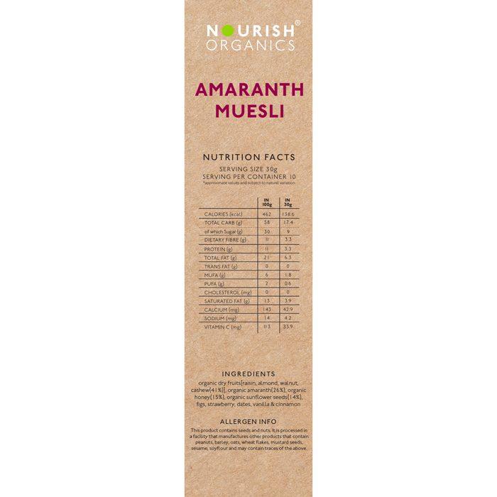 This product is a power-packed super-food, high in protein and antioxidants. It has a nutty, crunchy texture and sweet echoes of cinnamon and vanilla.