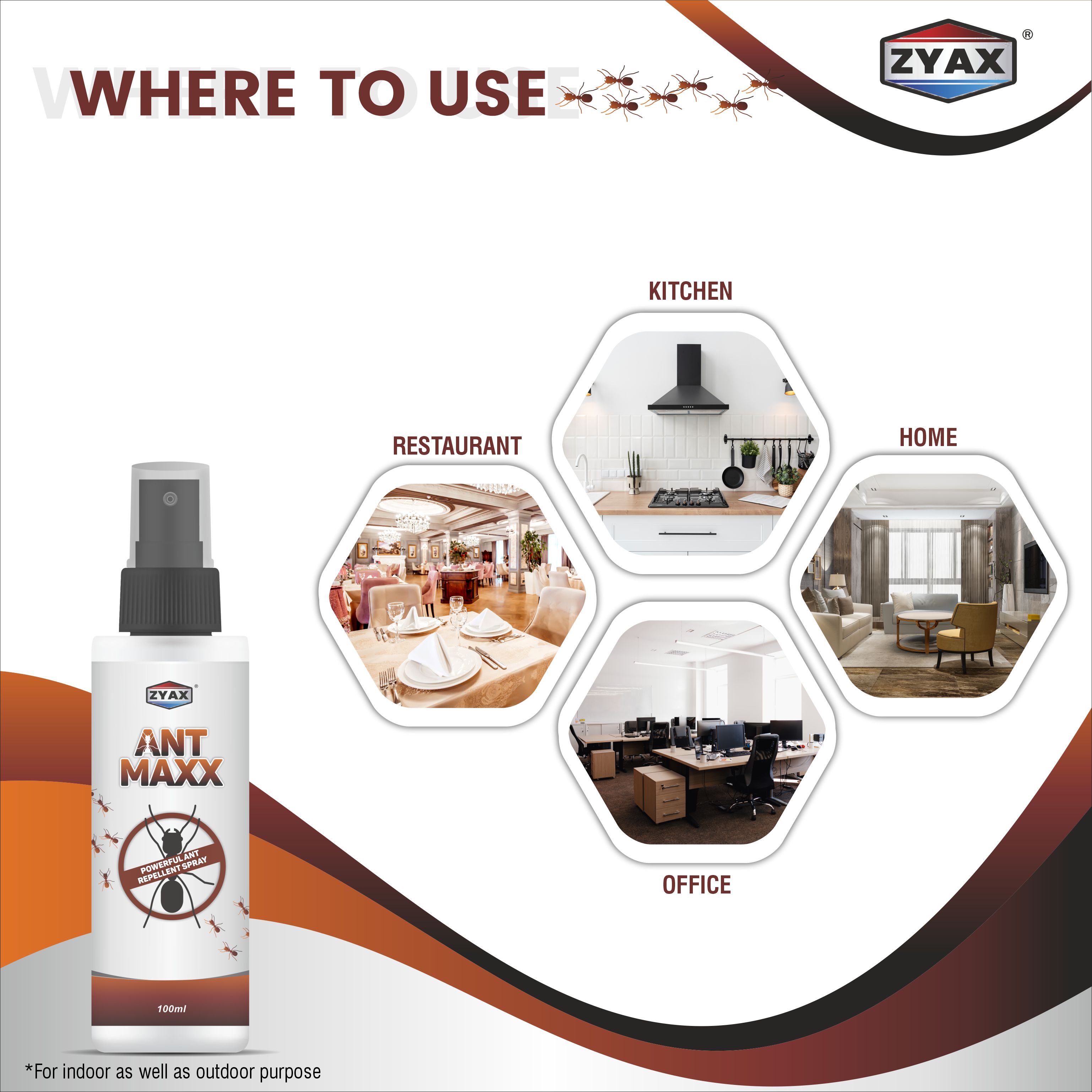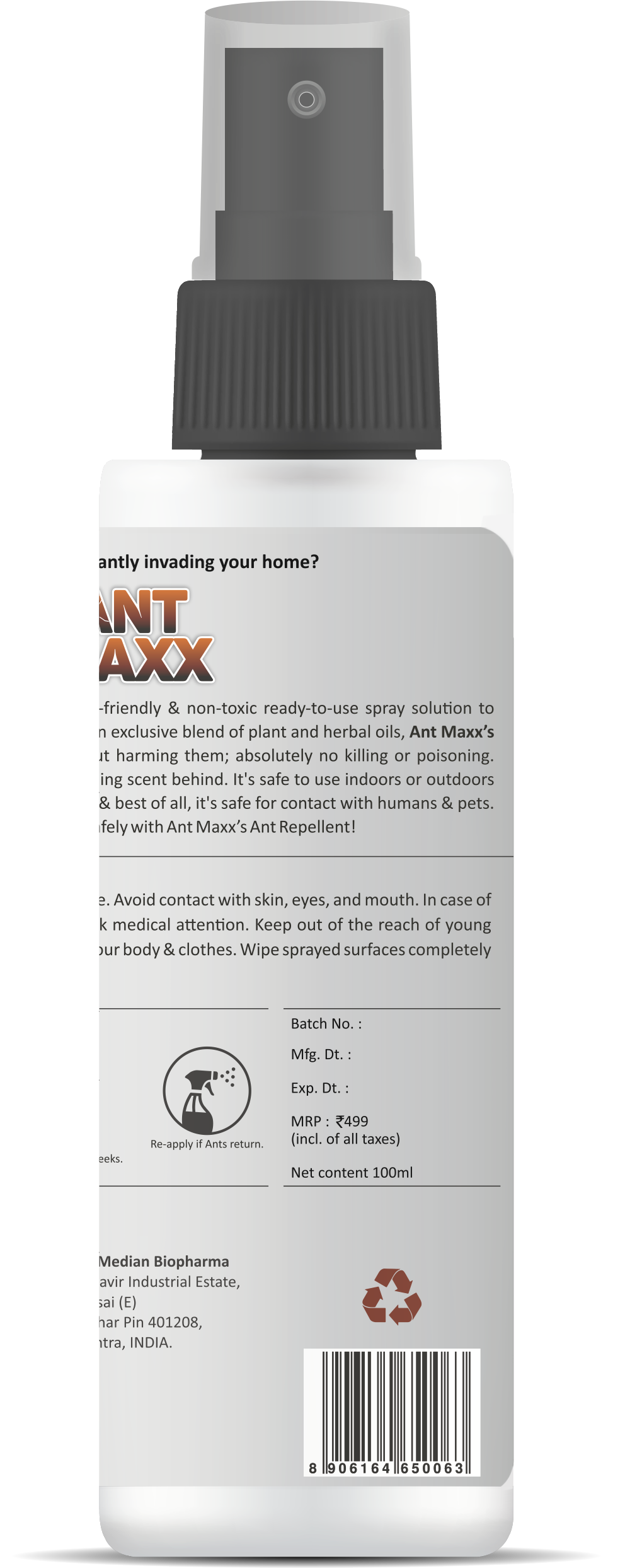 Zyax Ant Maxx Ant Repellent Spray is a powerful solution specifically formulated to combat ant infestations. This handy 100 ml spray bottle provides a convenient and effective way to control ants in and around your home. Designed with efficiency in mind, Zyax Ant Maxx features a potent formula that repels ants and prevents them from entering your living spaces. The spray is specially created to target common ant species, such as sugar ants, carpenter ants, and pavement ants. It works by emitting a scent that ants find unpleasant, deterring them from establishing trails or nests in treated areas. The spray can be applied indoors, such as along baseboards, near windows and doors, and in kitchen areas, as well as outdoors on patios, decks, and other ant-prone areas. Its compact size makes it easy to carry and store, allowing you to address ant problems whenever and wherever they arise. It is important to note that Zyax Ant Maxx is for external use only and should be kept out of reach of children and pets. Say goodbye to unwanted ant invasions with Zyax Ant Maxx Ant Repellent Spray. Its targeted formulation and convenient packaging make it a reliable choice for ant control, allowing you to maintain a clean and ant-free environment in your home.