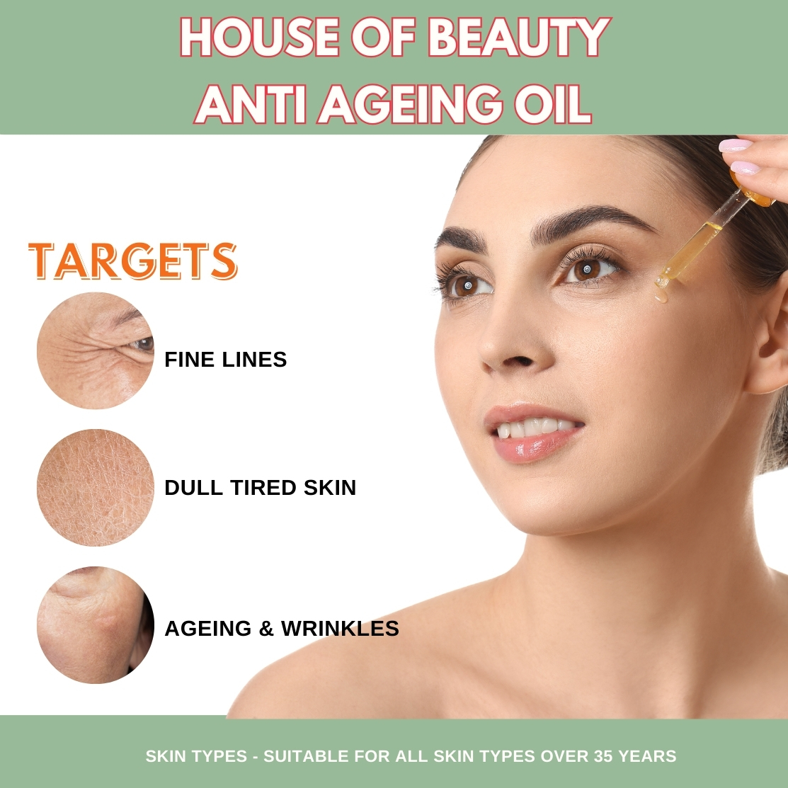 House of Beauty's Anti-Ageing face oil (Power 10) is carefully formulated for combination to dry skin type. Comes highly recommended for mature skin that has lost its sheen and shows signs of ageing. If you feel your skin is dull, tired, dry and lacks lustre this oil is for you.