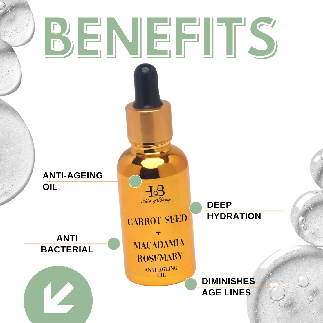 A combination of US FDA approved super ingredients like rosemary and carrot seed have natural anti-ageing benefits. Coupled with Chamomile & lavender, this oil helps in soothing tired lifeless skin.