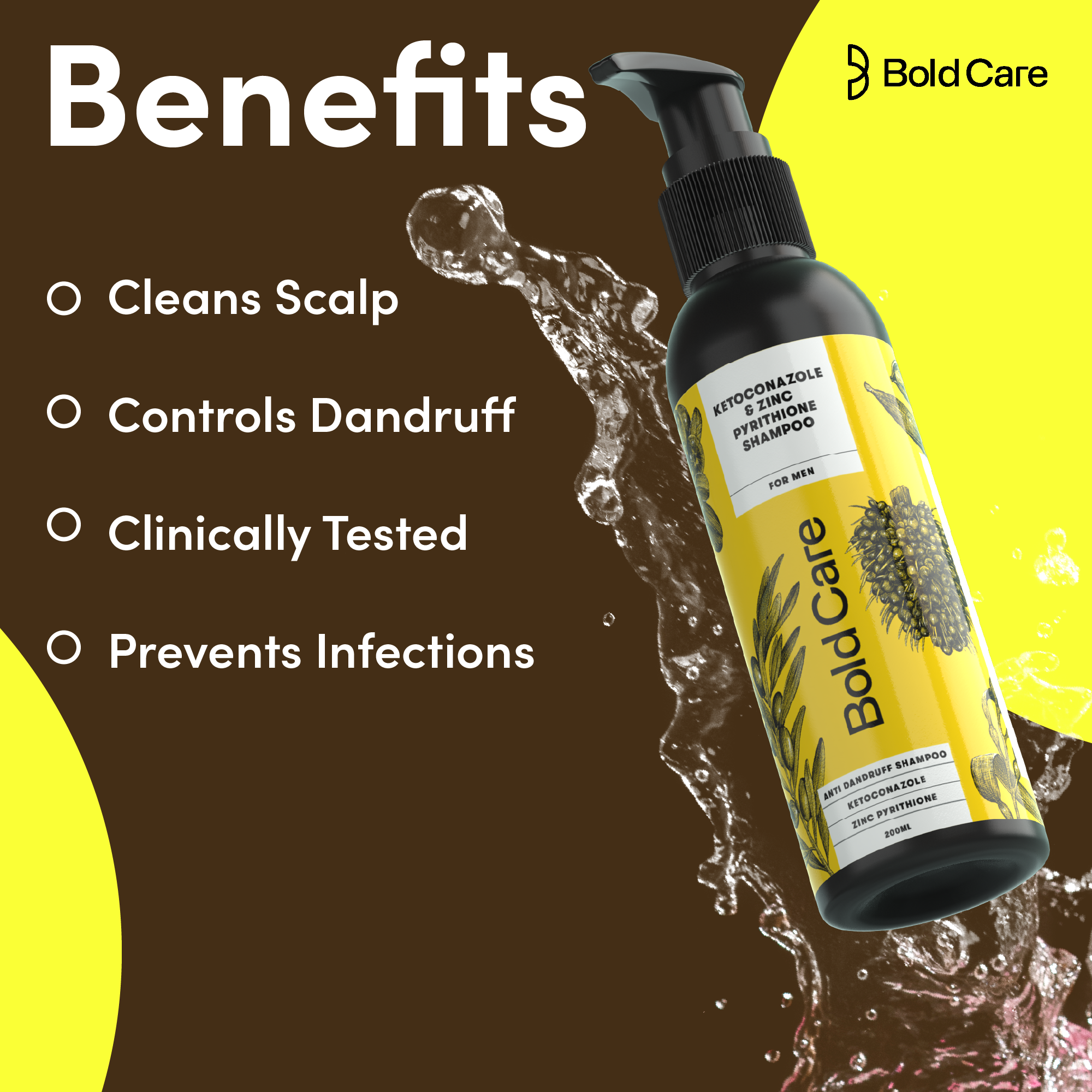 Dandruff problems can be annoying and difficult to get rid of. Bold Care's Anti-Dandruff shampoo is enriched with Ketaconazole and ZPTO, proven ingredients that help fight dandruff effectively!