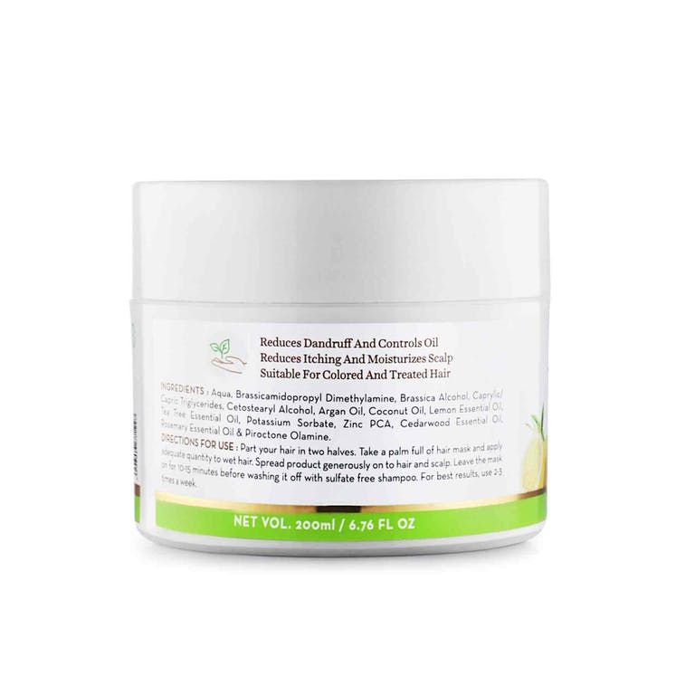 Mamaearth's Tea Tree Hair Mask helps you soothe the irritating oily scalp & control dandruff, thus giving you an itch-free healthy scalp. Coconut oil & Argan oil present in the mask moisturize & nourish your hair while Lemon oil & Tea Tree oil make sure that the oil & dandruff are at bay. No matter what type of hair you have - dry hair, curly hair, colored hair, treated hair, oily hair Mamaearth Tea Tree Mask suits them all!