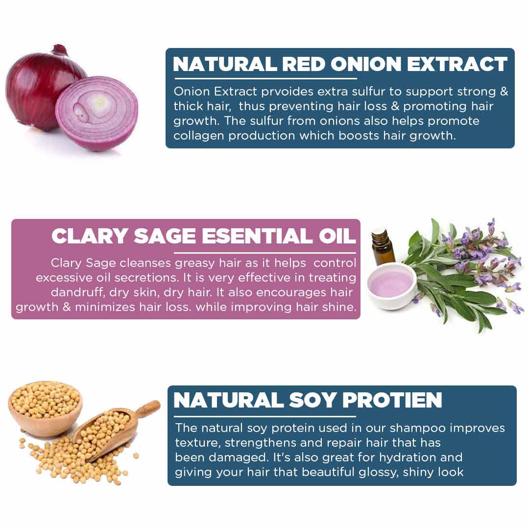This natural shampoo for men has been designed to reduce hair fall, reduce dandruff, improve scalp health and help you get an overall softer, denser, healthier and more conditioned head of hair. The red onion extract is a powerful anti oxidant and anti bacterial agent that is well known for its properties to nourish and strengthen your hair, reduce hair fall and promote hair growth. The clary sage essential oil in this is known to stimulate the growth of healthier, stronger strands while eliminating dandruff and preventing the production of excessive natural oils and sebum on the scalp. It is also enriched with a unique and carefully chosen blend of natural essential oils and extracts that are designed to improve scalp health, nourish and strengthen your hair and improve overall hair density by reducing dandruff and hair fall. Natural essential oils and extracts like bergamot, soya protein, tilia tomentosa, citric acid, lavender and lemon peel help to strengthen hair roots, reduce hair fall and dandruff, stimulate circulation and promote faster, denser and stronger hair growth. Soy protein helps to improve hair texture and to strengthen and repair hair that has been damaged. It's also hydrates, giving your hair that beautiful glossy, shiny look. Soy protein gives your damaged hair a boost and gives dull, thirsty locks some shine. Overall this natural onion shampoo has been specially designed to control hair fall while simultaneously improving hair health. This is completely free of sulfates and parabens and has been designed to deliver the safest and most natural hair care routine.