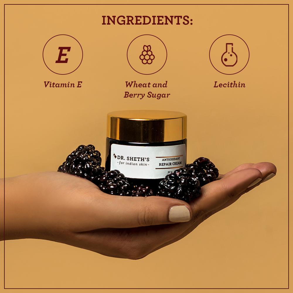 A high dose of vitamin E (5%), in this product, works to repair skin damage, while dimethicone helps to reduce marks and scars. Wheat, berry sugars and lecithin provide ample hydration and also plump up the skin keeping it supple.