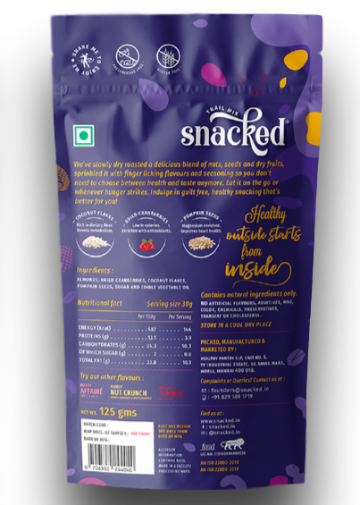 This product is perfect for someone looking for a naturally sweet kick in the day, a delicious mix of coconut flakes, cranberries and cinnamon almonds. What's so healthy about it ? energy: this product comprises of metabolism boosting nutrients like vitamin e and magnesium, perfect pre-workout snack to keep you pushing your boundaries on and off the field! coconut flakes: instant metabolism booster and fat shredder | pumpkin seeds: high in magnesium