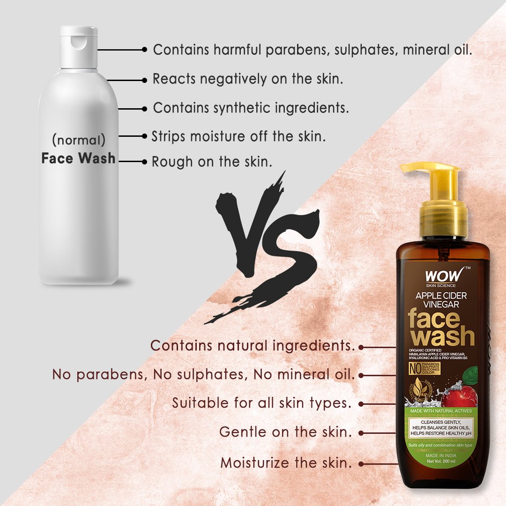 This skin clarifying cleanser is enriched with pure certified apple cider vinegar, aloe vera extract, and hyaluronic acid. It helps in removing dirt, sweat, excess oil and makeup very thoroughly. It helps in restoring skin's natural pH balance and controls excess sebum production. Hyaluronic acid improves skin's moisture levels, while vitamin B5 helps strengthen skin's lipid barrier. So that your skin looks fabulously clean, smooth and glowing.