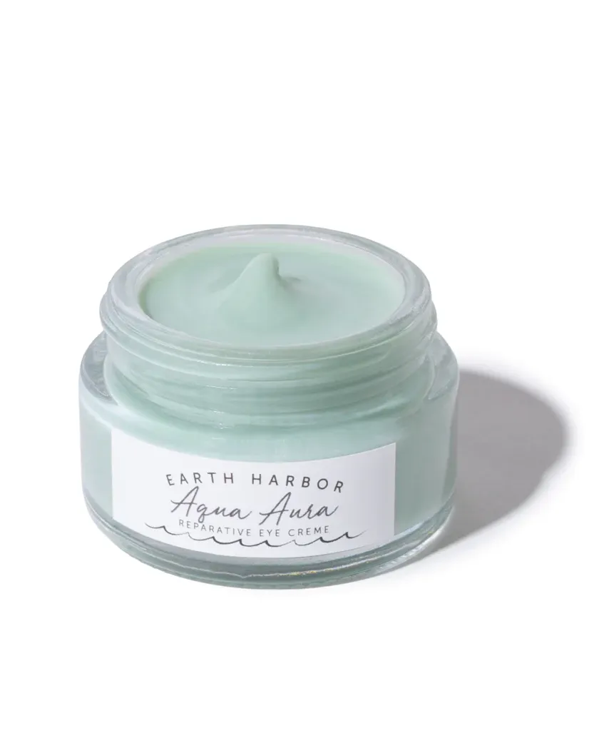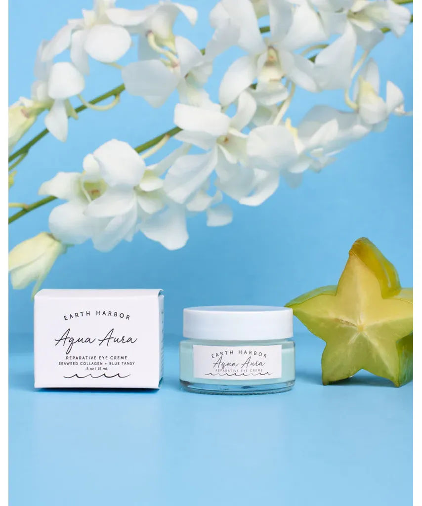 Introducing the Aqua Aura Reparative Eye Creme, a radiant gem inspired by the soothing embrace of iridescent blue-green crystals. Meticulously crafted to invigorate and restore, this transformative eye cream is a symphony of healing and fortifying elements. Enriched with Seaweed Collagen and the calming essence of Blue Tansy, it awakens the delicate eye area with a harmonious blend of hydrating marvels and potent antioxidants. Nurtured by replenishing plant oils and gentle actives, this formula's botanical prowess diminishes the appearance of fine lines, wrinkles, dark circles, and puffiness. Sun damage's subtle grip is replaced by a luminous rejuvenation, unveiling a visage that exudes youthful vitality.