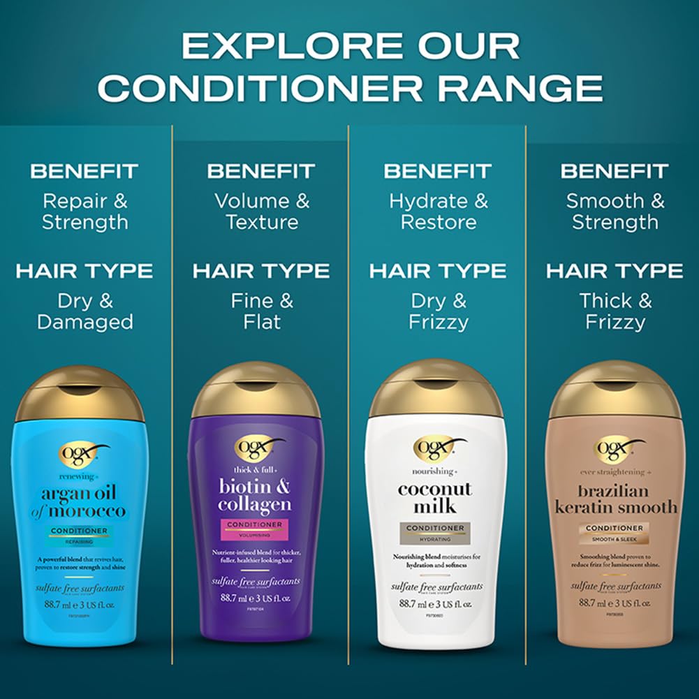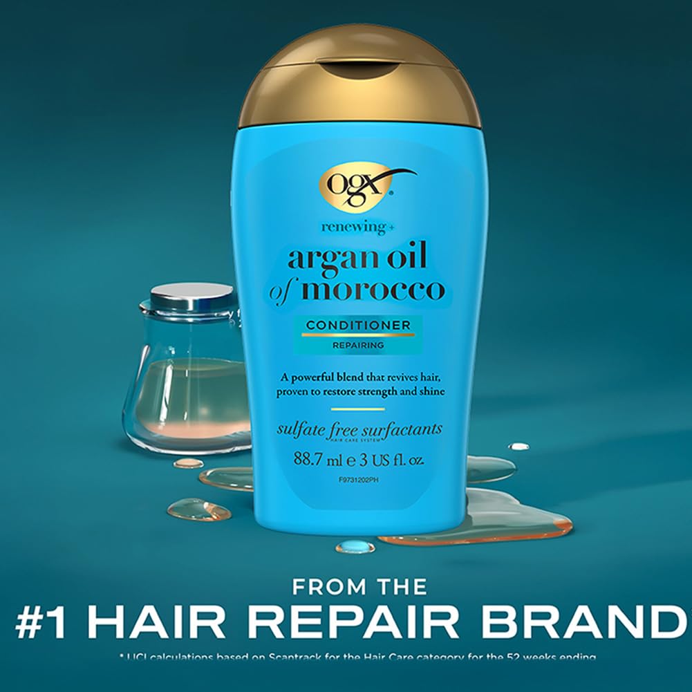 "HYDRATE, REPAIR, RENEW: The 3-fluid ounce bottle of OGX Renewing + Argan Oil of Morocco Hair Shampoo gives damaged, dry and brittle hair a look and feel of silky perfection and radiant shineSOFT, SMOOTH & SILKY: This hydrating shampoo helps renew and soften hair by penetrating strands to lock in moisture. The shampoo also helps improve strength and elasticity while creating soft, touchable tresses.
