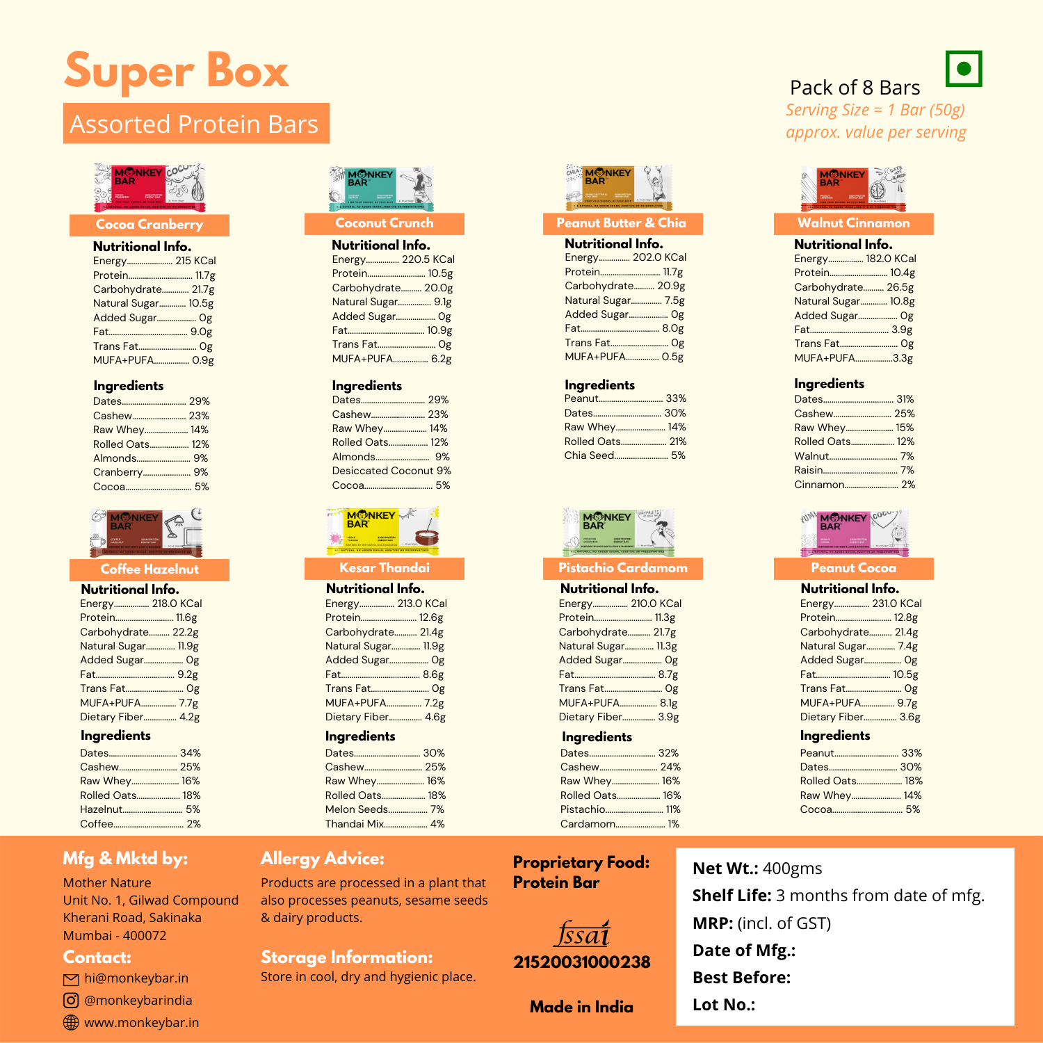 Big on Nutrition. Bigger on Taste. While searching for a perfect clean and healthy snack - We got inspiration by Maa's nagging to make us eat nuts and fruits. These bars are simple, pure and delicious made from just 5-7 natural ingredients with No added sugars, preservatives or additives and no monkey business.
