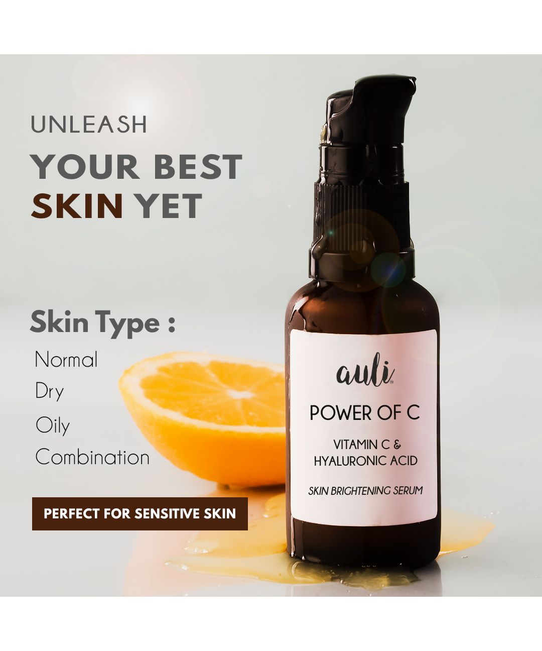 The Power Of C by Auli, a Vitamin C face serum rich, rich in antioxidant properties. It has been proven effective to protect your skin from sun damage, especially from the harmful UVA & UVB rays. In addition to its brightening & glow benefits, Vitamin C is also naturally helps to strengthen your skin and repel various elements that could damage it. It also has a scar minimizing and de-tanning effect, as mentioned. In addition to all these amazing benefits, this serum is extremely nourishing due to its Hyaluronic Acid content in the formulation.