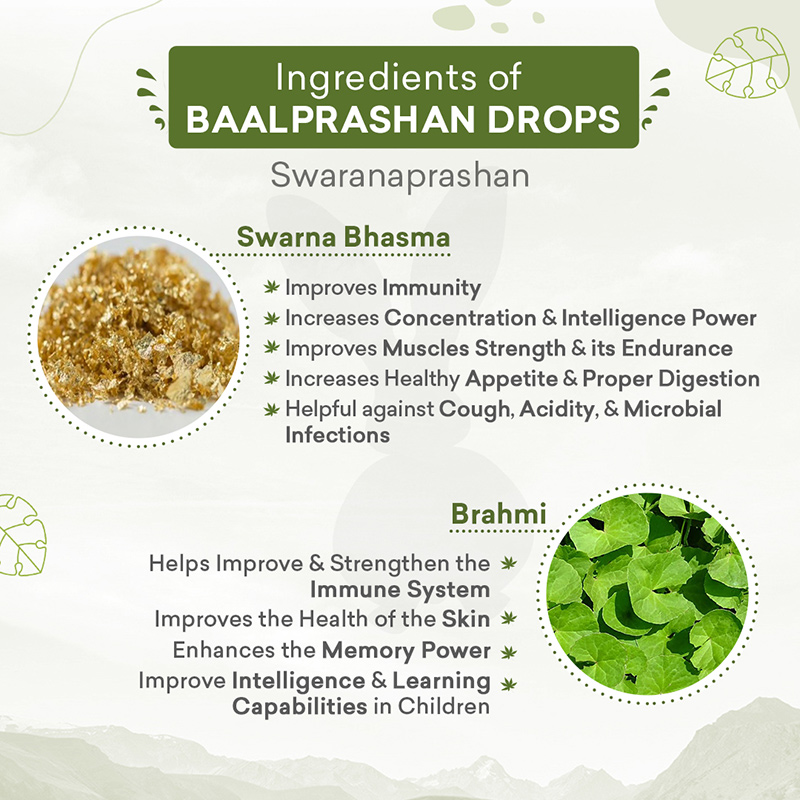BabyOrgano Swarnaprashan (suvarnaprashan) is an immunity booster drops intended for the children of age 0 to 15 years. Its key ingredients carefully develop a strong immunity in kids which acts as a protective shield against the seasonal diseases. Swarnapashan drops composition naturally contains 100% Ayurvedic products with no artificial or chemical ingredients. Swarnaprashan is equally beneficial for detoxification of a body. It progressively improves excellent memory and effective concentration. Furthermore, it also helps with abdominal infections and intestinal worms. All things considered, it naturally increases the physical and mental health of a child and helps to properly recover the body from preventable illness. It boosts appetite and improves proper digestion.