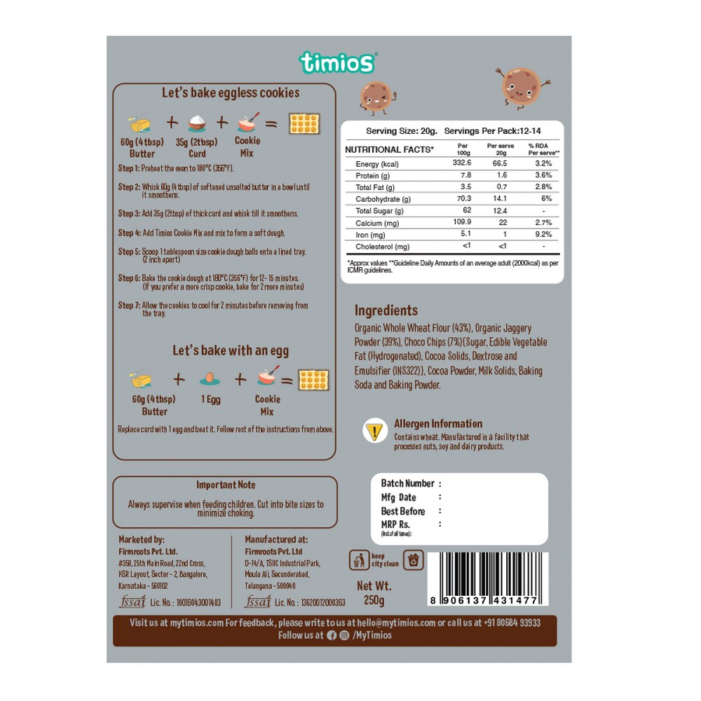 Timios Cookie Mix is all things nice and chocolateLoads of healthy goodness: Made with multigrains and jaggery, Timios Bake mixes are rich in Protein, Iron and Calcium.