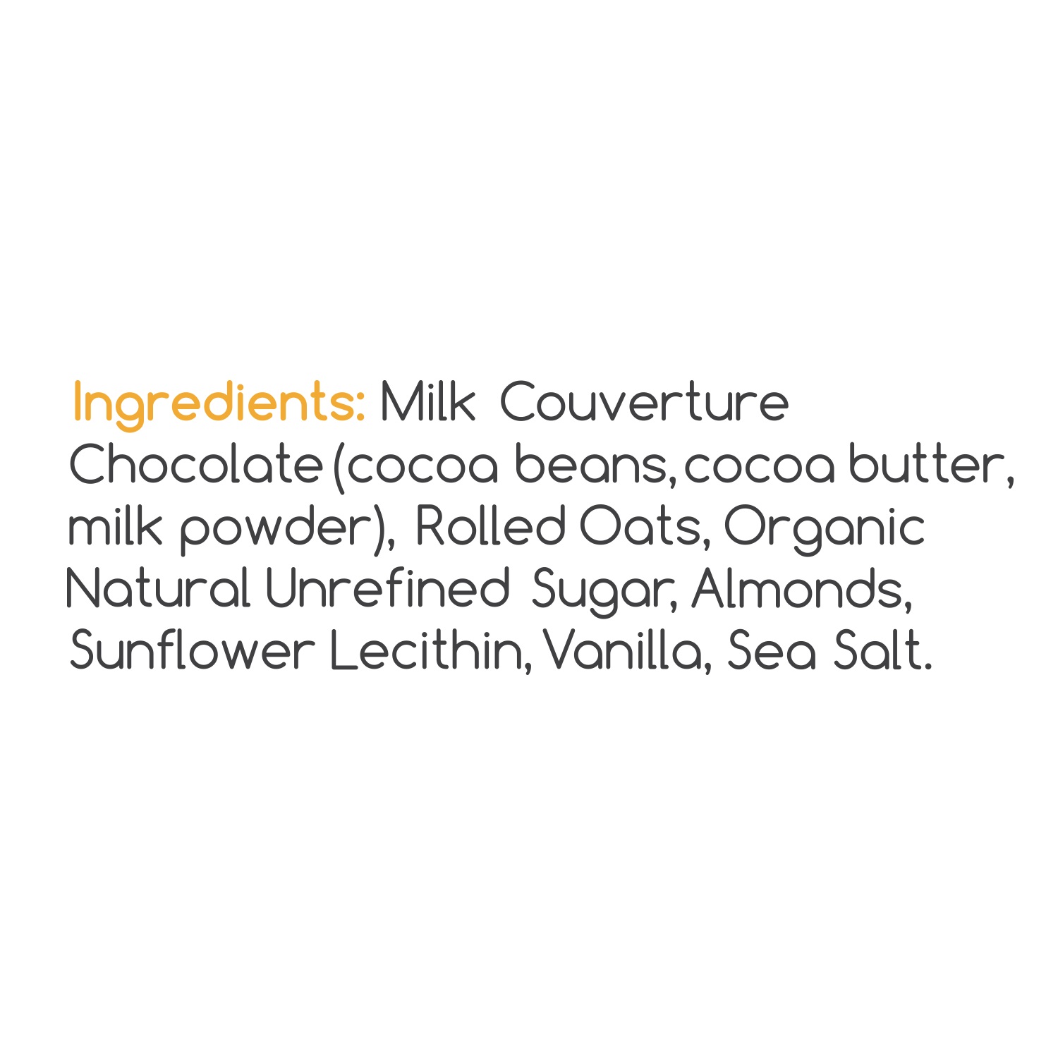 Selected from the best cocoa trees and crafted into these delicious snacking slivers of milk chocolate. Sweetened with caramely organic natural unrefined sugar and topped with crunchy oats and roasted almonds - simple ingredients that impart complex flavours. Savor them!