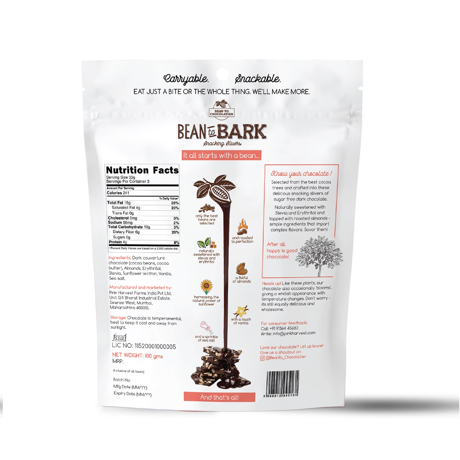 Selected from the best cocoa trees and crafted into these delicious snacking slivers of dark chocolate. Sweetened with erythritol & stevia and topped with roasted almonds- simple ingredients that impart complex flavours. Savor them!