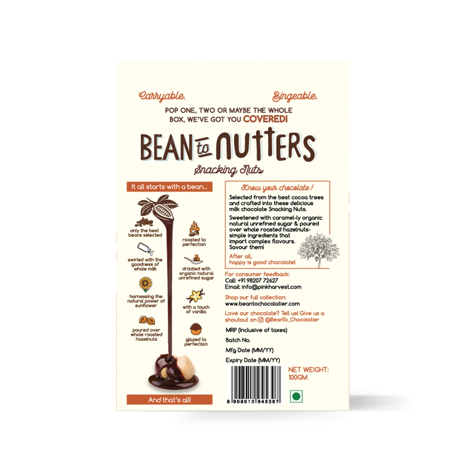 Selected from the best cocoa trees and crafted into these delicious milk chocolate snacking nuts. Sweetened with caramel-ly organic natural unrefined sugar and poured over whole roasted hazelnuts - simple ingredients that impart complex flavours. Savor them!