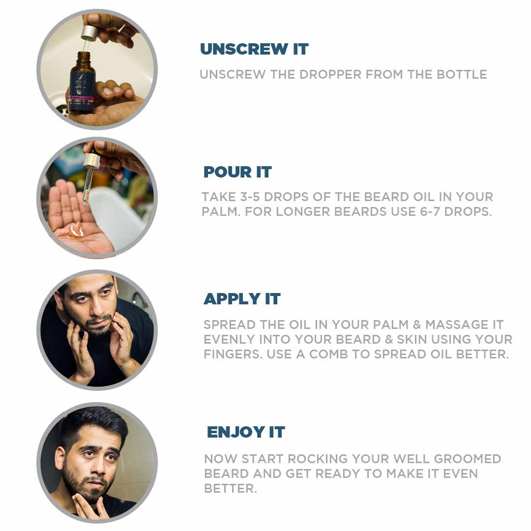 This product has been specially designed by experts using only the purest and most natural essential oils to help boost beard growth. It helps to nourish and strengthen the roots of the hair in your beard and promote denser and faster growth. The red onion extract in this product is a powerful anti oxidant and anti bacterial agent that is well known for its properties to strengthen your beard, reduce hair fall and promote stronger and denser beard growth. It is also very good at hair follicle nourishment and helps restore lost nutrients to your skin. It also helps tame your beard frizz and manager your beard. Packed with vitamin E, this oil also works to nourish and soften your existing beard, enhancing manageability and shine. Moreover, our beard oil has been designed to be a non greasy hair oil that is 100% natural and contains no sulfates, parabens or any other harmful chemicals that might cause any damage or irritation. Made with pure essential oils like argan oil, almond oil, coconut, jojoba oil and many more, helps hydrate, nourish and strengthen your beard hairs, so your beard can grow thicker, stronger and faster. The beard oil also helps increase blood circulation to the beard which promotes faster beard growth. It is also known to minimize breakage and thinning making it a very effective ingredient to support support healthier, faster and stronger beard growth. It also helps in reducing hair fall and filling in patchy spots in the beard so your beard is thick, lush and soft.