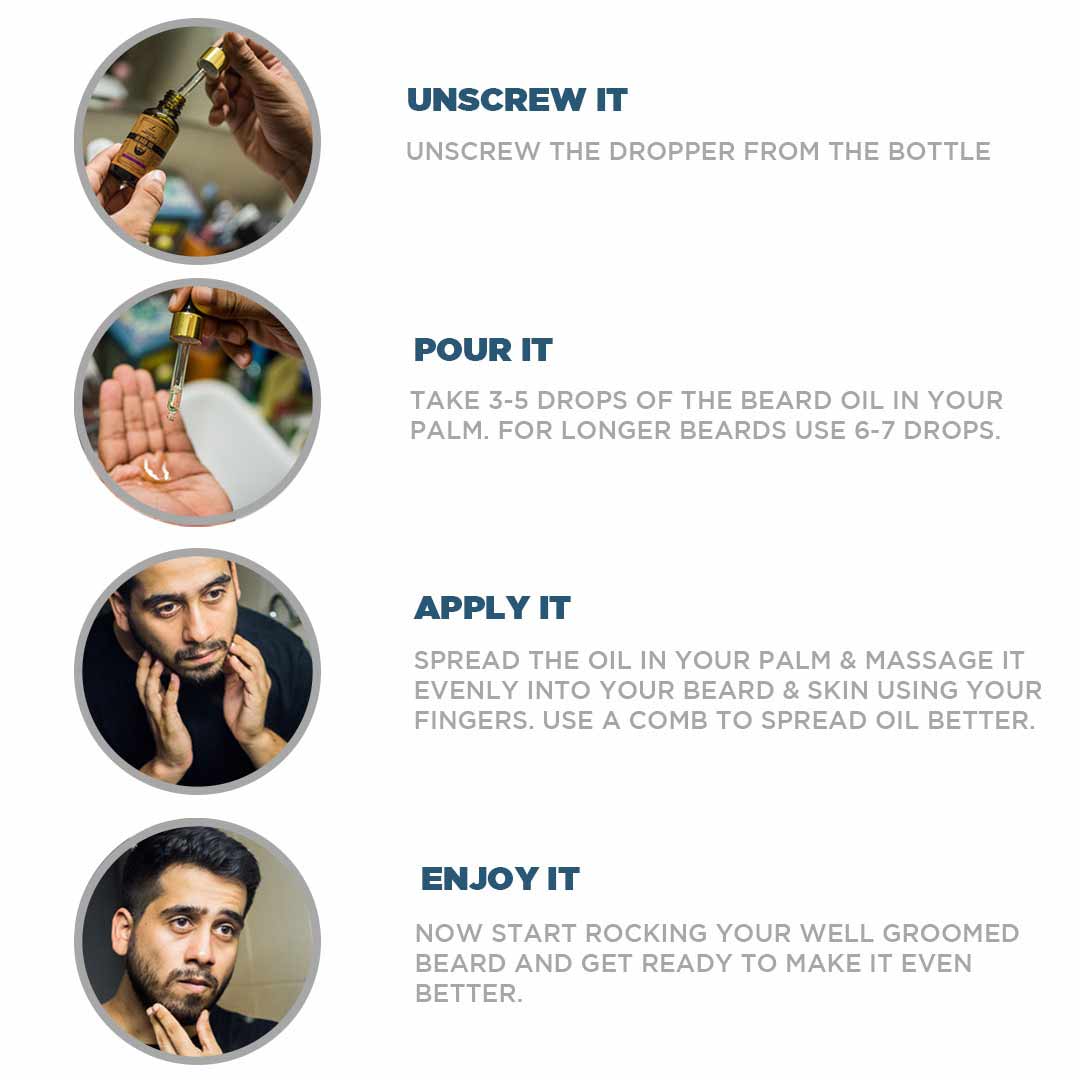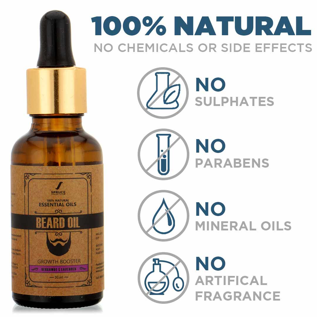 This product has been specially designed by experts using only the purest and most natural essential oils to help boost beard growth. It helps to nourish and strengthen the roots of the hair in your beard and promote denser and faster growth. It also helps tame your beard frizz and manager your beard. Packed with vitamin E, this oil also works to nourish and smoothen your existing beard, enhancing manageability and shine. It is made with pure essential oils like argan oil, almond oil, coconut, jojoba oil to help you grow your beard longer, faster and stronger. The beard oil also helps increase blood circulation to the beard which promotes faster beard growth. The blend of essential oils is rich in vitamin A,B,E,K, omega 9,6,3 and linoleic acid which help increase blood circulation to face and assist in stronger and faster beard growth. This helps in reducing hair fall and filling in patchy spots in the beard so your beard is thick, lush and soft. The beard oil also helps in taming your beard frizz, reducing beardruff and providing an extra shine to your beard so you and your beard are always on top of your grooming game. It also contains lavender essentail oil, black pepper essential oil, bergamot essentail oil and patchouli essential oil that give it a light and refreshing scent.