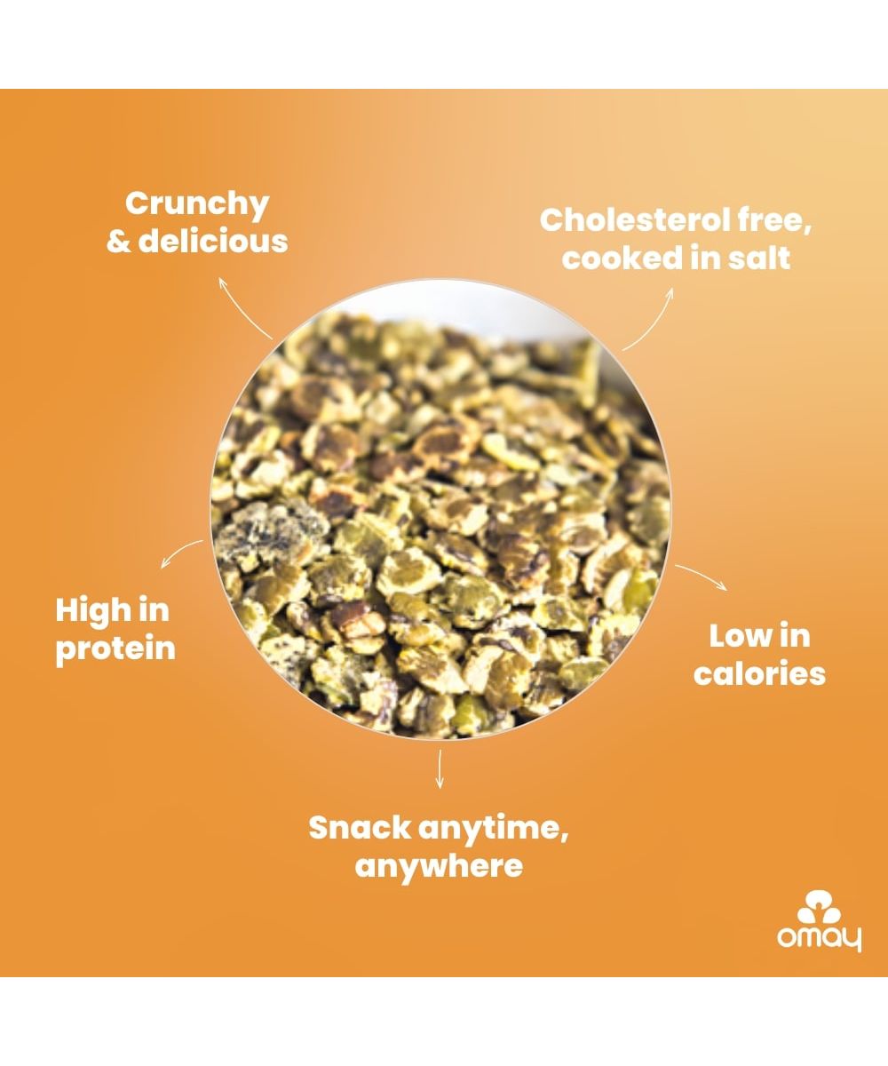 Made using Rajasthan's Roasting process, this snack in COOKED IN SALT with no use of oil or butter. Seasoned with NATURAL herbs & spices, Omay's Roasted Beaten Moong is super crunchy, delicious and something to binge on guilt-free, anytime anywhere. 100% roasted, non-fried snack.
