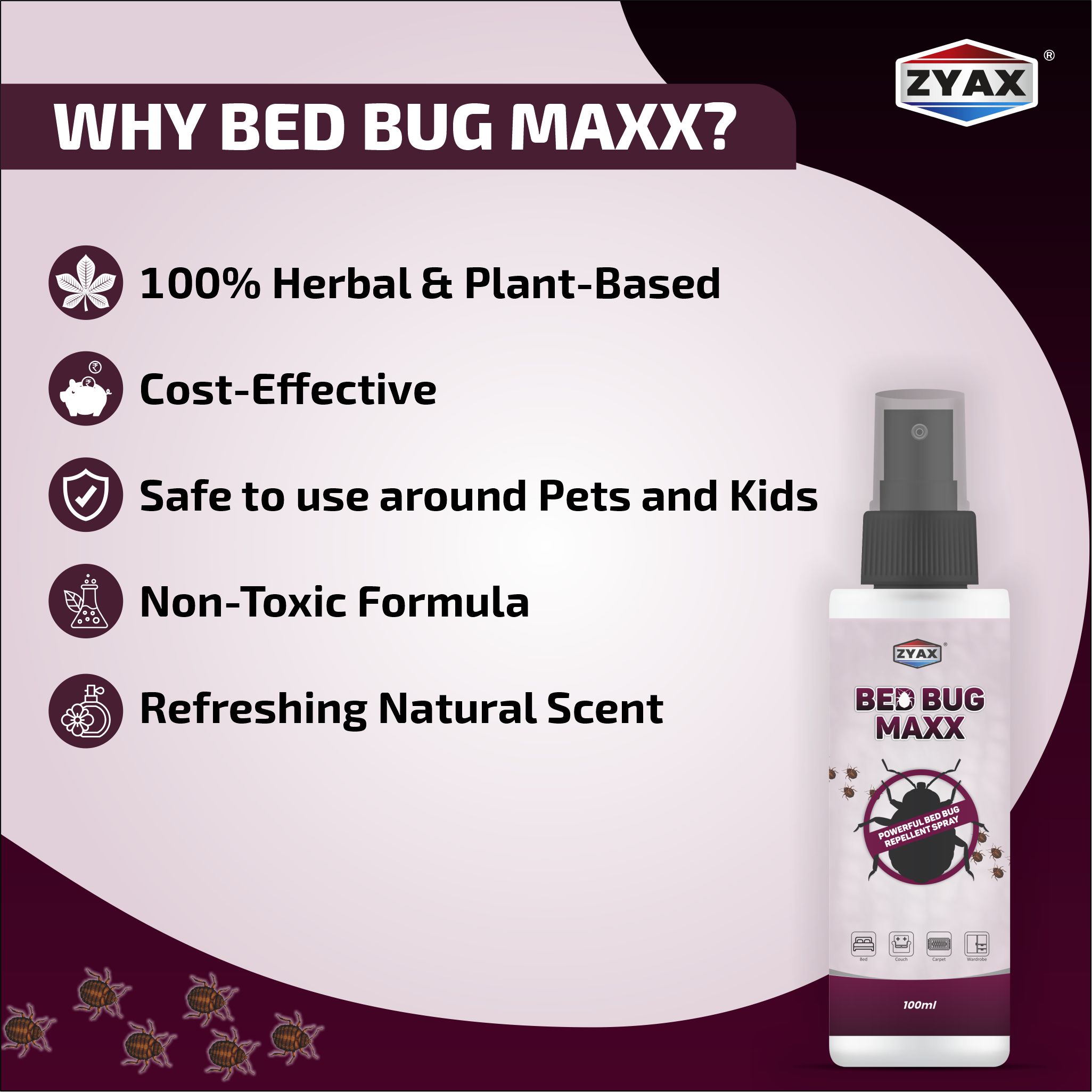 Bed Bug Maxx Bed Bug Repellent Spray is a highly effective solution designed to combat and repel bed bugs. With its powerful formulation and convenient packaging, this spray provides an efficient and practical way to deal with bed bug infestations. It is specifically formulated to target bed bugs, one of the most common and persistent pests that can cause sleepless nights and discomfort. This repellent spray is designed to repel bed bugs and discourage them from nesting and breeding in treated areas. Its potent formula contains ingredients that emit a scent that bed bugs find repulsive, making them less likely to infest your mattress, furniture, or other surfaces. By creating a barrier with Zyax Bed Bug Maxx, you can effectively prevent bed bugs from establishing themselves in your living spaces. It is important to thoroughly treat all affected areas to ensure maximum effectiveness. Additionally, it is recommended to wash and dry bedding, linens, and clothing at high temperatures to eliminate any bed bugs or eggs. Zyax Bed Bug Maxx Bed Bug Repellent Spray provides a reliable solution for addressing bed bug infestations. Its powerful formulation and easy application make it an essential tool in your battle against these stubborn pests, allowing you to regain control of your living spaces and enjoy a good night's sleep.