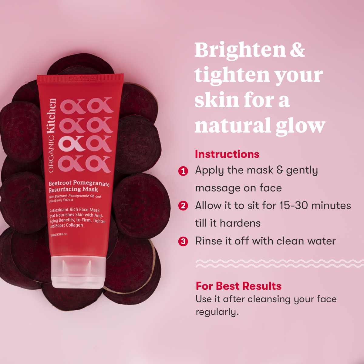 This beetroot rich resurfacing mask is a complete skin prevention of your skin from environmental stressors and damages. This mask acts as a conventional mask to give you an instant remedy for dull skin, it is our latest go-to for glowing skin. This lightweight and non-greasy face mask leave skin refreshed and tone with a complete rejuvenated look. It is an instant treatment for dull and dry skin.