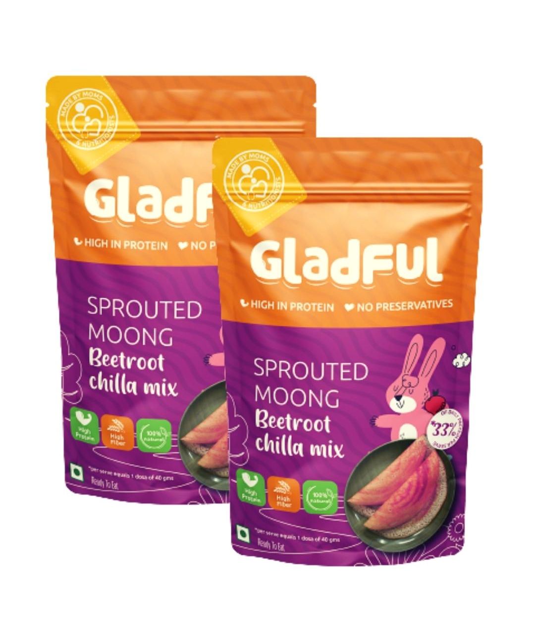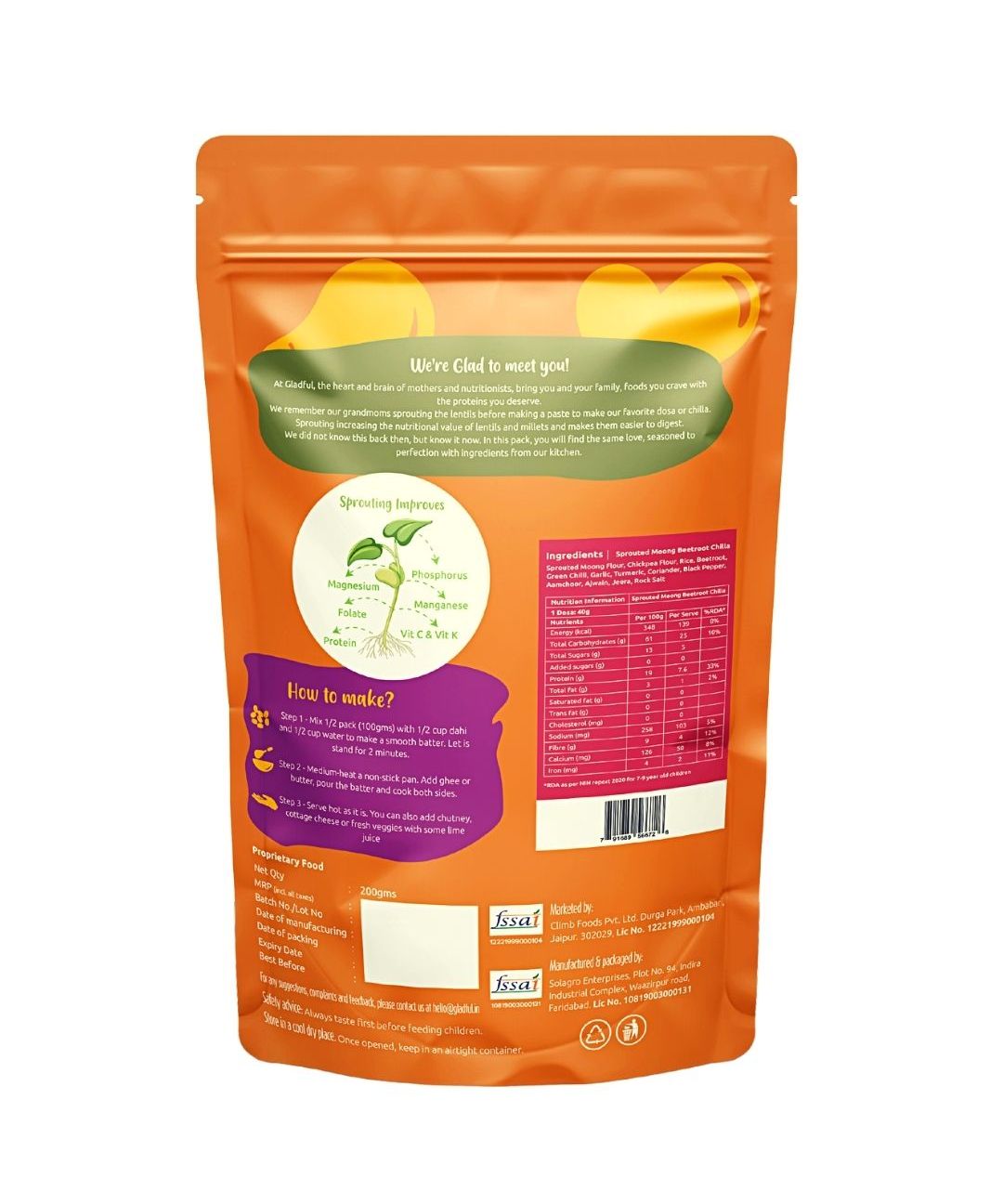 Gladful Sprouted lentils and millets are now in your every morning yummy breakfast chilla or dosa. this instant Chilla and Dosa Mix is high in protein and fiber. it can be easily ready in 6 minutes. Pair it with paneer, cheese, or your favorite chutney. Available in 2 yummy flavors ? beetroot and spinach. Great for little tummies and for adults too. Sprouting makes it easy to digest and increases nutrition value making this the best mini snack in the house.