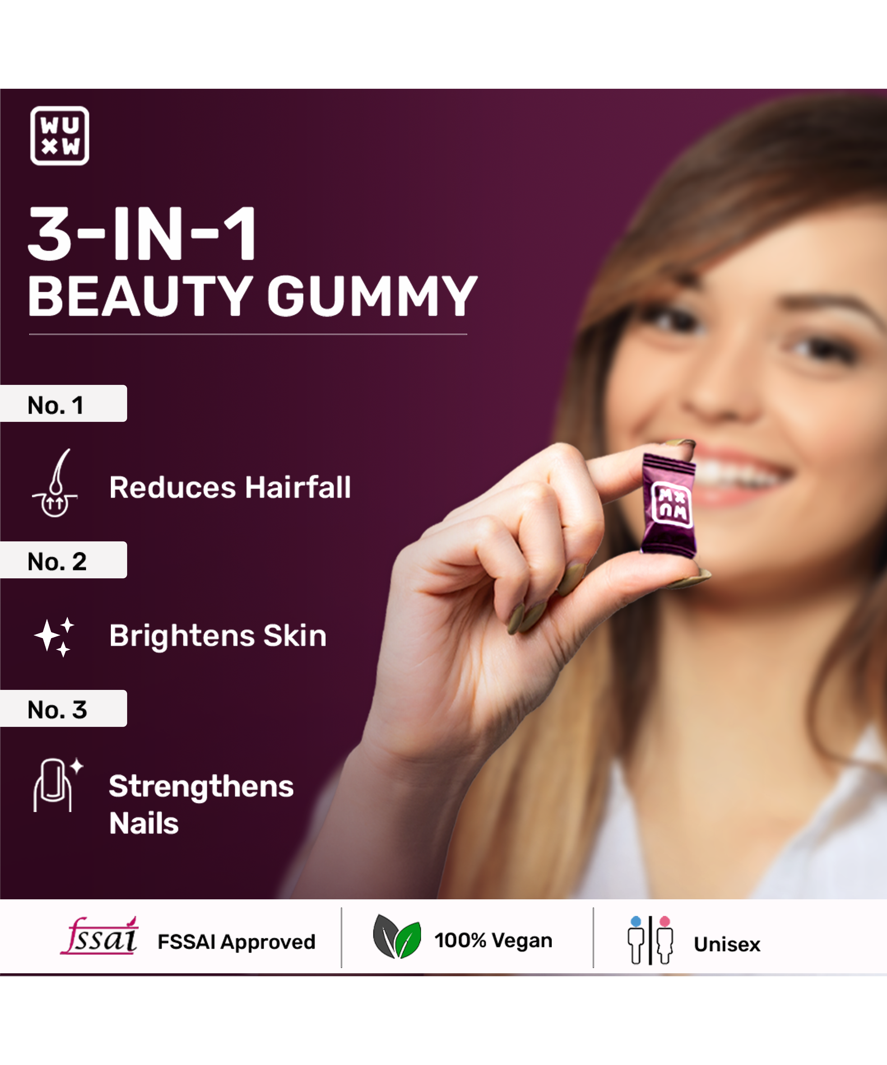Introducing What’s Up Wellness Beauty Biotin Hair Gummies—a tasty blend of essential nutrients in gummy form. Packed with biotin, sea buckthorn, aloe vera, zinc, and vitamins A to E, these gummies enhance skin, hair, and nails. Sea buckthorn fights pollution and breakouts, while aloe vera moisturizes. Enjoy improved hair health, reduced hair fall, brighter skin, and stronger nails effortlessly.