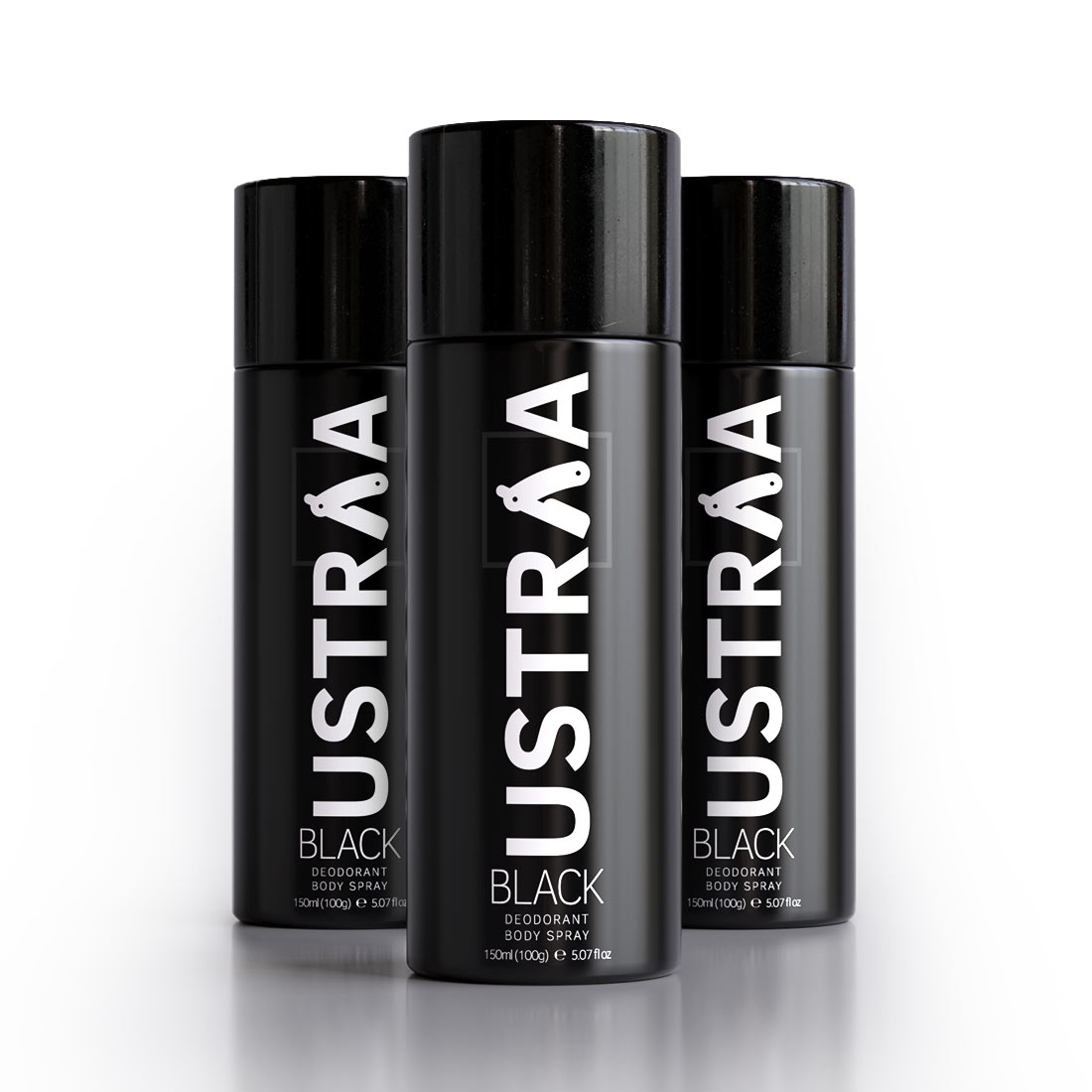 Ustraa Black Deodorant Body Spray - Set of 3 - 150 ml