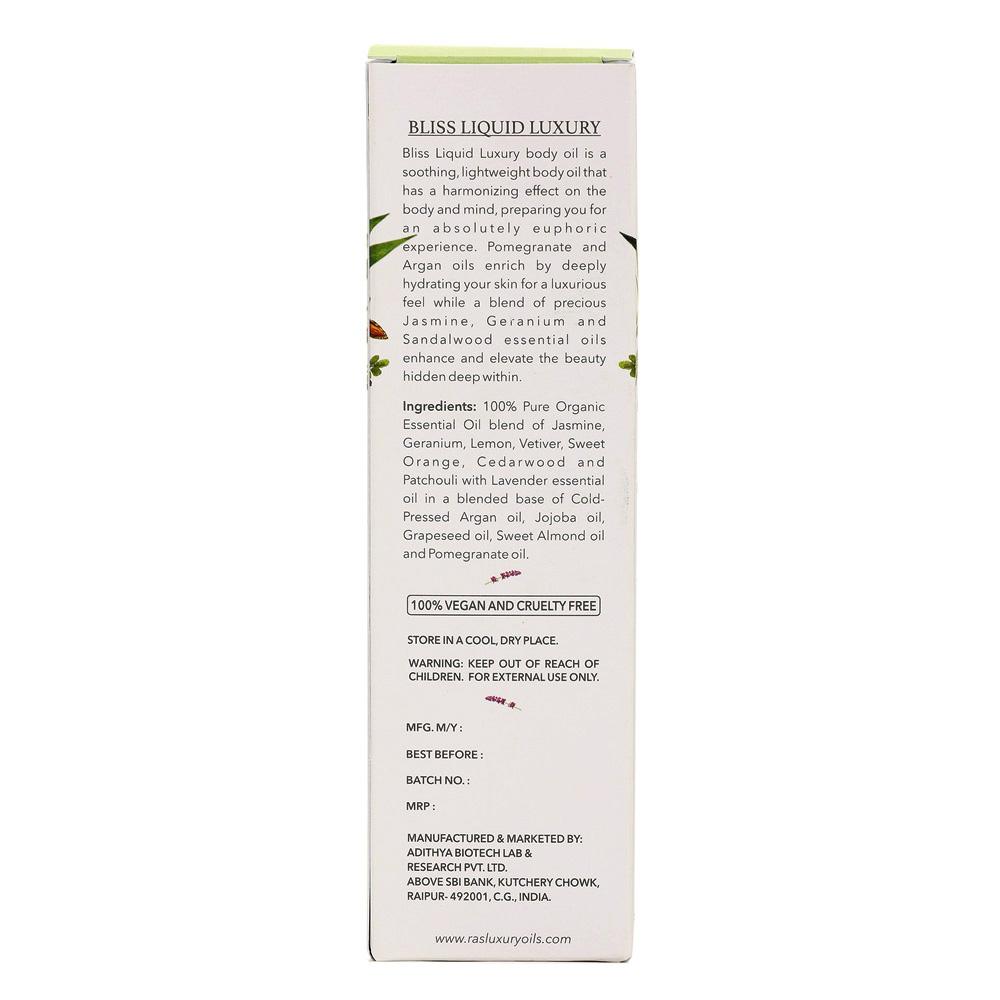 Bliss Liquid Luxury body oil is a luxurious, lightweight body oil that puts you in a state of blissful indulgence, while having a harmonizing effect on the body and mind. Pomegranate and Argan oil deeply hydrate and nourish the skin, while a blend of precious Jasmine, Geranium and Sandalwood essential oils reveal and enhance its natural glow.