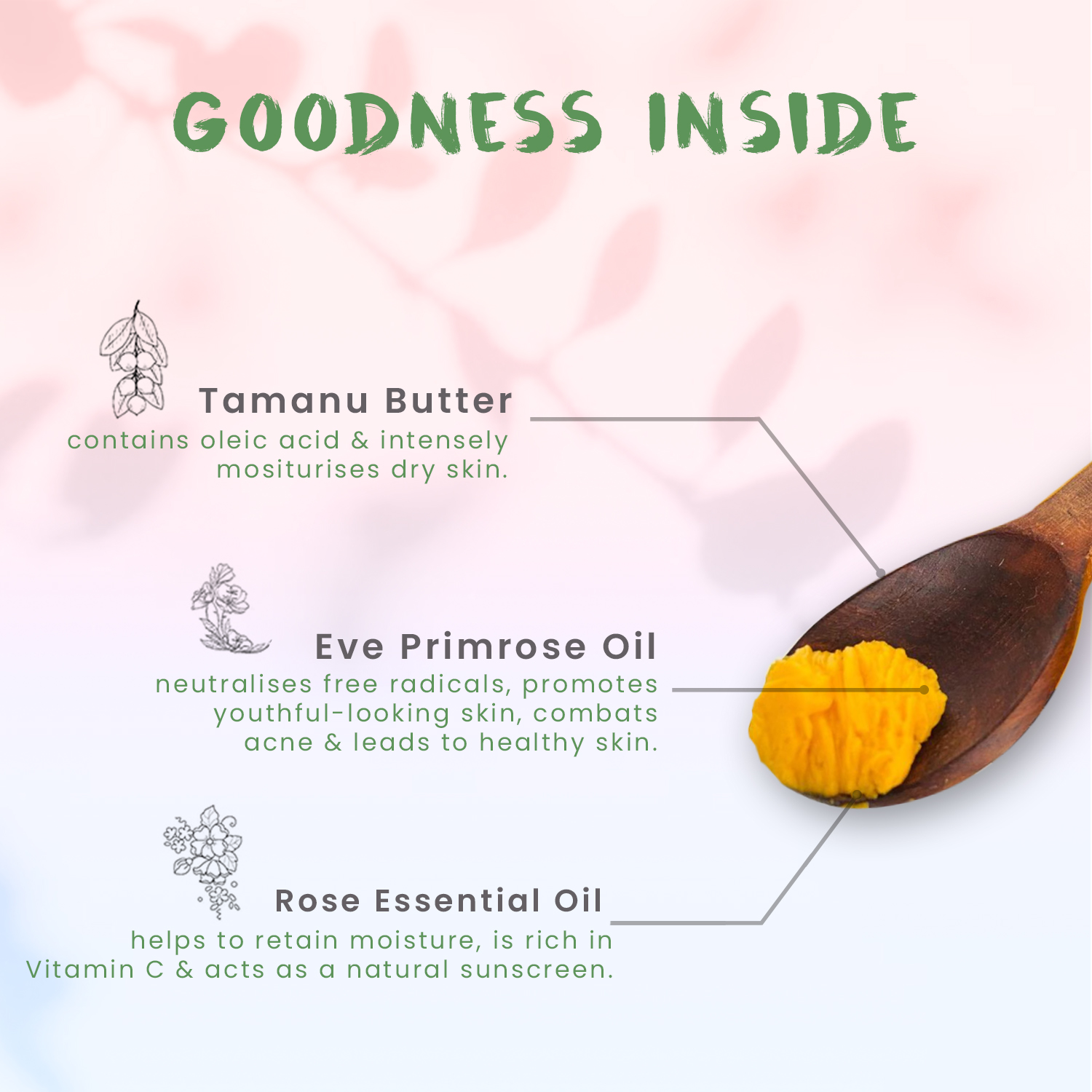 The solitary combination of tangy orange and berry-like rosehip body butter dribbles into the layers of the skin, moisturizes the skin for which it craves, works on skin discoloration and reduces dark spots. Packed with vitamins, fatty acids, antioxidants and umpteen natural oils that absorb right into the skin, leaving it soft and silky.