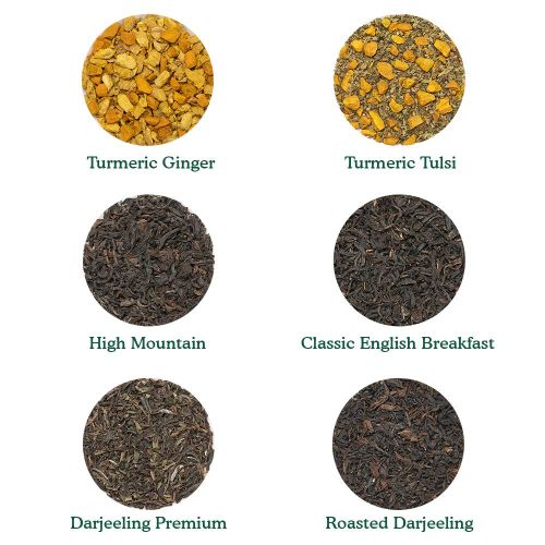 This product is a gift collection of 12 of the most alluring in-house blends. A perfect symphony of taste and good health, this box packs 12 signature blends of Black tea, Green tea, Chai tea, and Herbal tisanes.