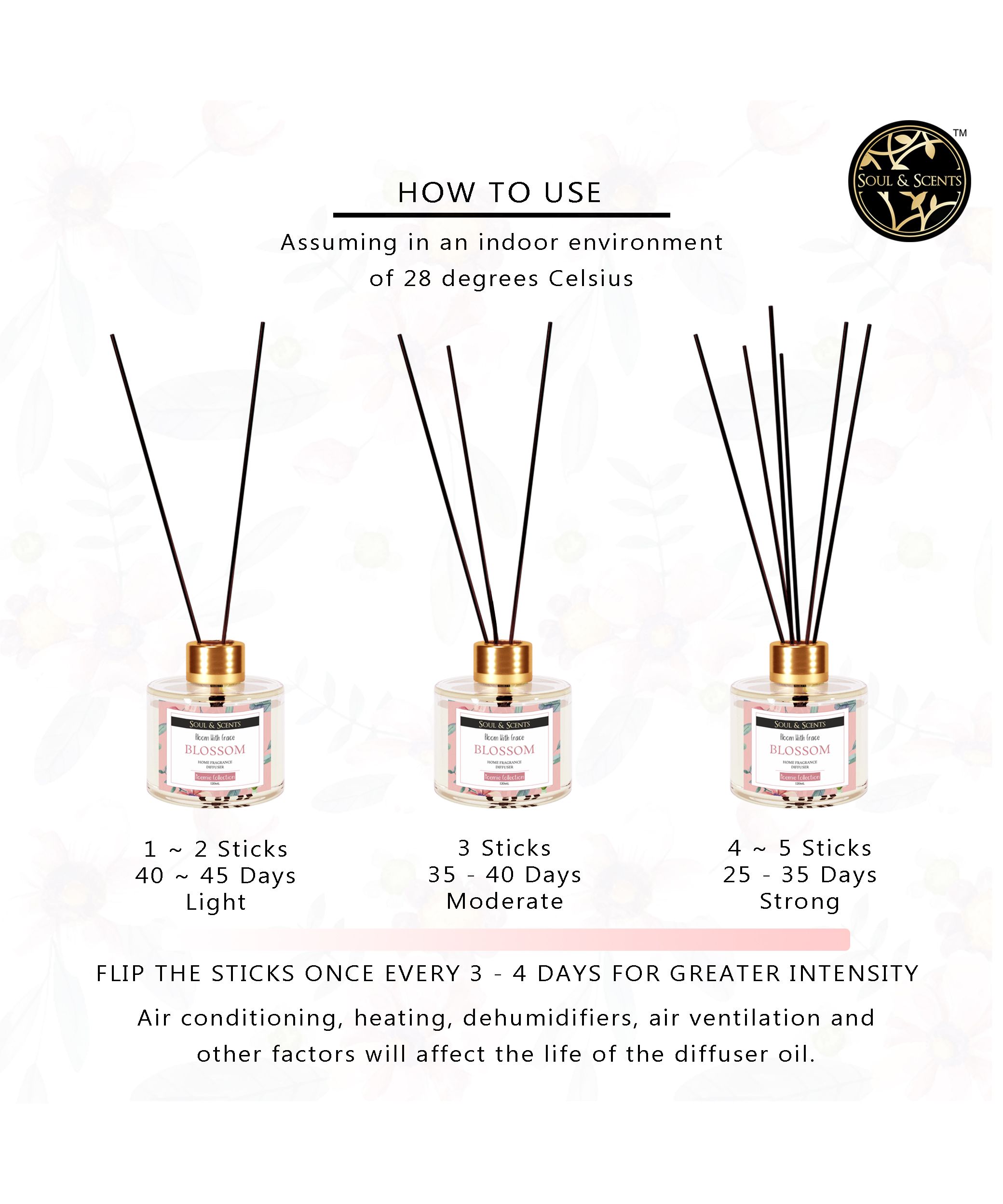 Indulge youself in this floral, sweet, fruity aroma, one of the most refreshing and unique aroma. It also soothes, refreshes and inspires feelings of peace and happiness. Long lasting scent, always keep your room in sweet fragrance.Safe, clean & non-toxic diffuser is perfect to fresh indoor air.