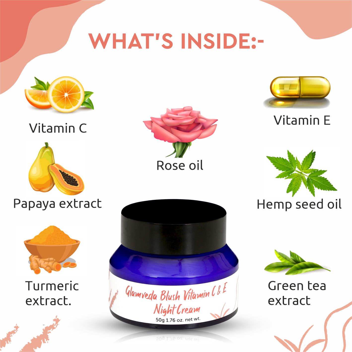 Want to look at the best version of you? The night creams are the best way of restoring the skin health and when they are power-packed the Ultimate Ingredient Vitamin C & E, Glamvedas Blush Vitamin C Night Cream is a rejuvenating cream with butter like texture,it fights against free radicals that do major damage to your skin. It is enriched with Hemp seed oil, turmeric, green tea, Vitamin C, Lactic acid,carrot seed oil & moringa oil which work on skins texture night long, leaving you with bright and glowing skin. Key features-