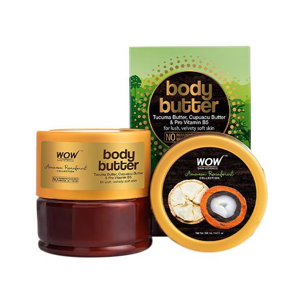 Helps banish dryness and restore lipid mantle of your skin. It gives your skin long lasting moisturisation that keeps it soft and supple through the day. It forms a light protective barrier on skin without clogging pores. This skin softening body butter spreads easily and gets absorbed into the skin so that your skin is able to breathe yet remain amply nourished.